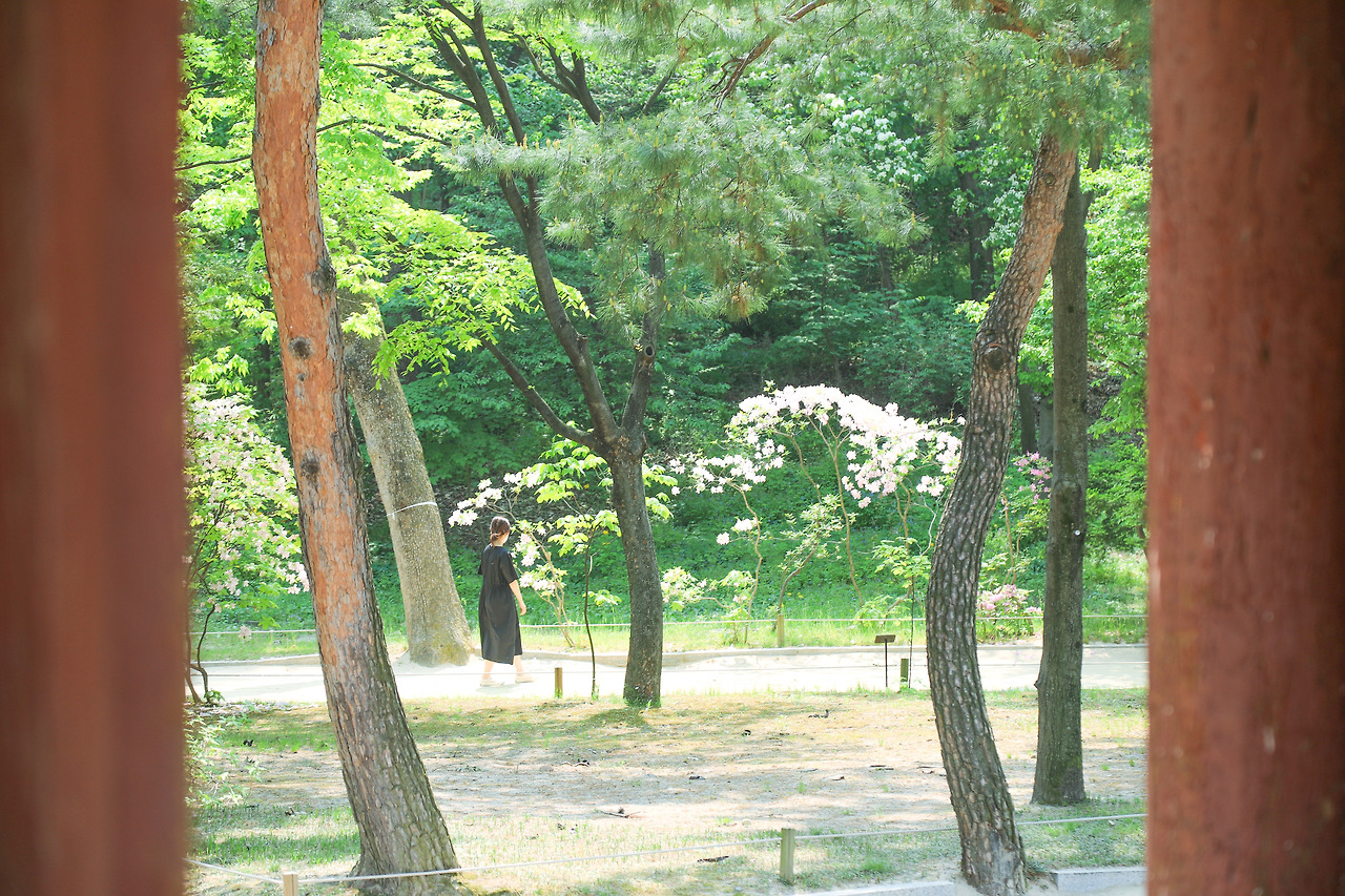 봄의 중간을 지나고 있는 꽃나무는, 춤추듯 하늘을 향하던 꽃과 땅의 녹색으로 숨어드는 꽃을 모두 지니고 있다. 꽃과 잎이 각자의 절정을 드러낸다. 공들여 제(祭)를 지내야 한다면 어쩌면 이곳이 더 나을 수도 있겠다는 생각을 한다. 신의 정원을 의도했겠으나 오히려 신이 생각나지 않는 자연스러운 정원이다. 어쩌면 최대한의 자연을 사당의 바로 옆에 가져다 둠으로써 신과 왕의 몸을 낮추려는 게 아니었을까. 이 정원을 가꾼 이들은 신주를 가진 왕조와는 관계가 없는 이들이었다.