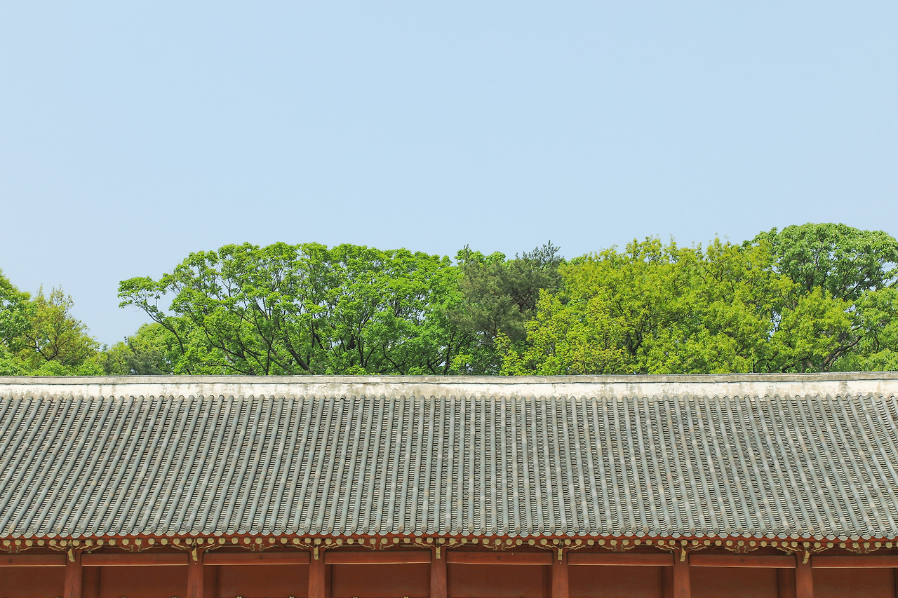 '거친 월대 바닥과 그 위로 육장한 지붕이 떠 있는 모습은 숭고하고 고전적인 건축미의 극치를 보여준다'라는 표지판 설명을 본다. 월대(月臺)는 건물 앞의 너른 마당을 뜻한다고 한다. 설명에 고개를 끄덕거린다. 여름에 가까운 햇볕을 온몸으로 받고 있는 돌들은 하나의 질감이다. 그 간결함으로 공간은 명징성을 획득한다.