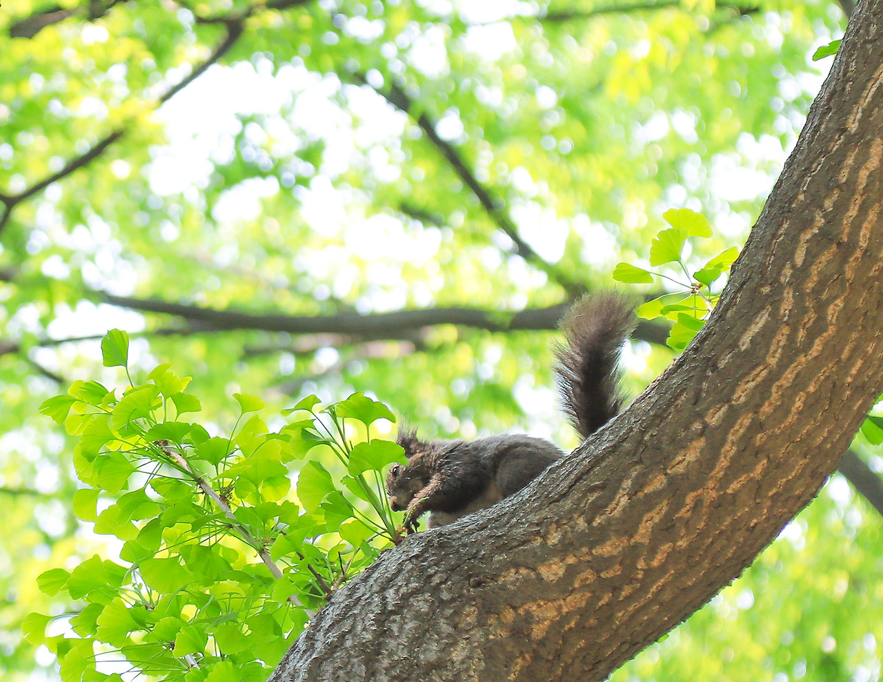 딱히 뭘 먹는 건 아닌 거 같은데 한 자리에 있질 못하고 잔망스럽다. 청설모는 종종 멈추고 신경을 모으고 다시 움직인다. 그들에게 거슬리지 않으려 최대한 움직임을 자제하지만, 사진 찍기를 기다려주지는 않는다. 그렇게 한참을 보는데 한 은행나무에서만 왔다 갔다 한다. 이 나무의 어느 면이 그들을 편하게 하는지는 알 턱은 없지만, 잠시 멈춘 그들에게선 편안함이 느껴진다.