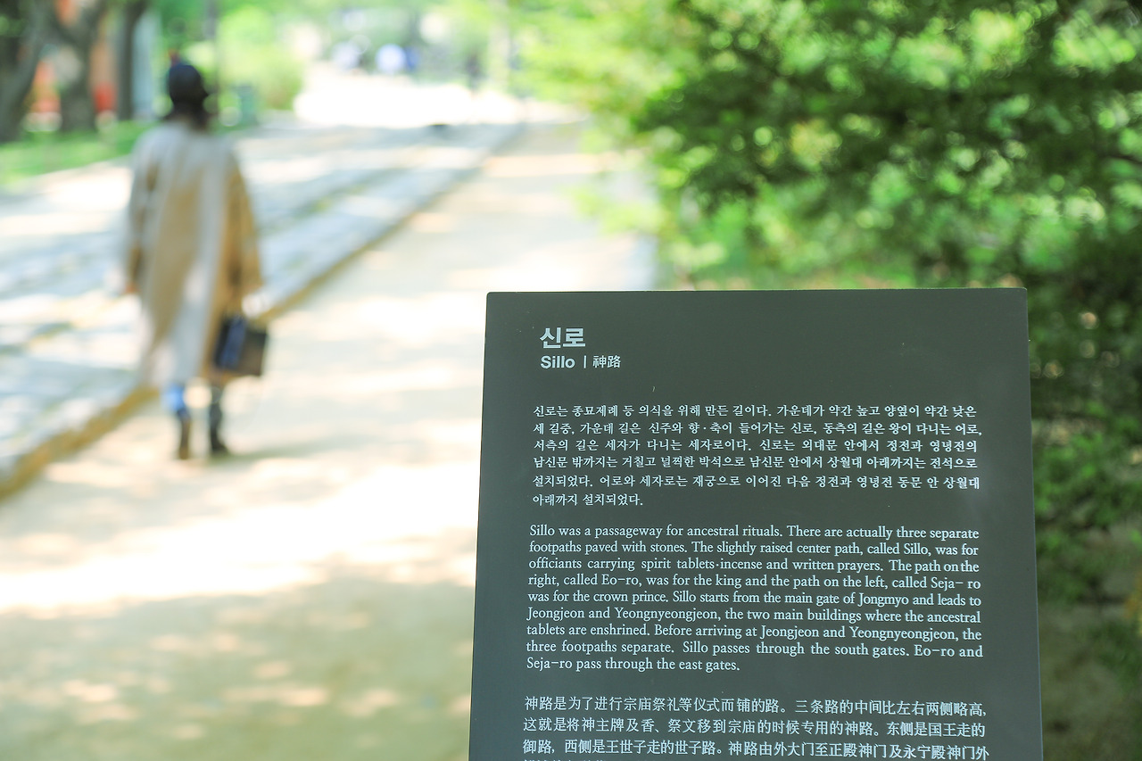 종묘의 입구에서부터 신로(神路)가 이어진다. 제식(制式)에 대해 경건함이나, 제례(祭禮)에 대한 신봉이 없는 편이라 특별한 감흥은 없다. 하지만, 너른 공간에 요란하지 않게 낸 길은 스스로의 품격을 갖추고 있다. 안내표지판대로, 그 길은 굳이 밟지 않기로 한다.