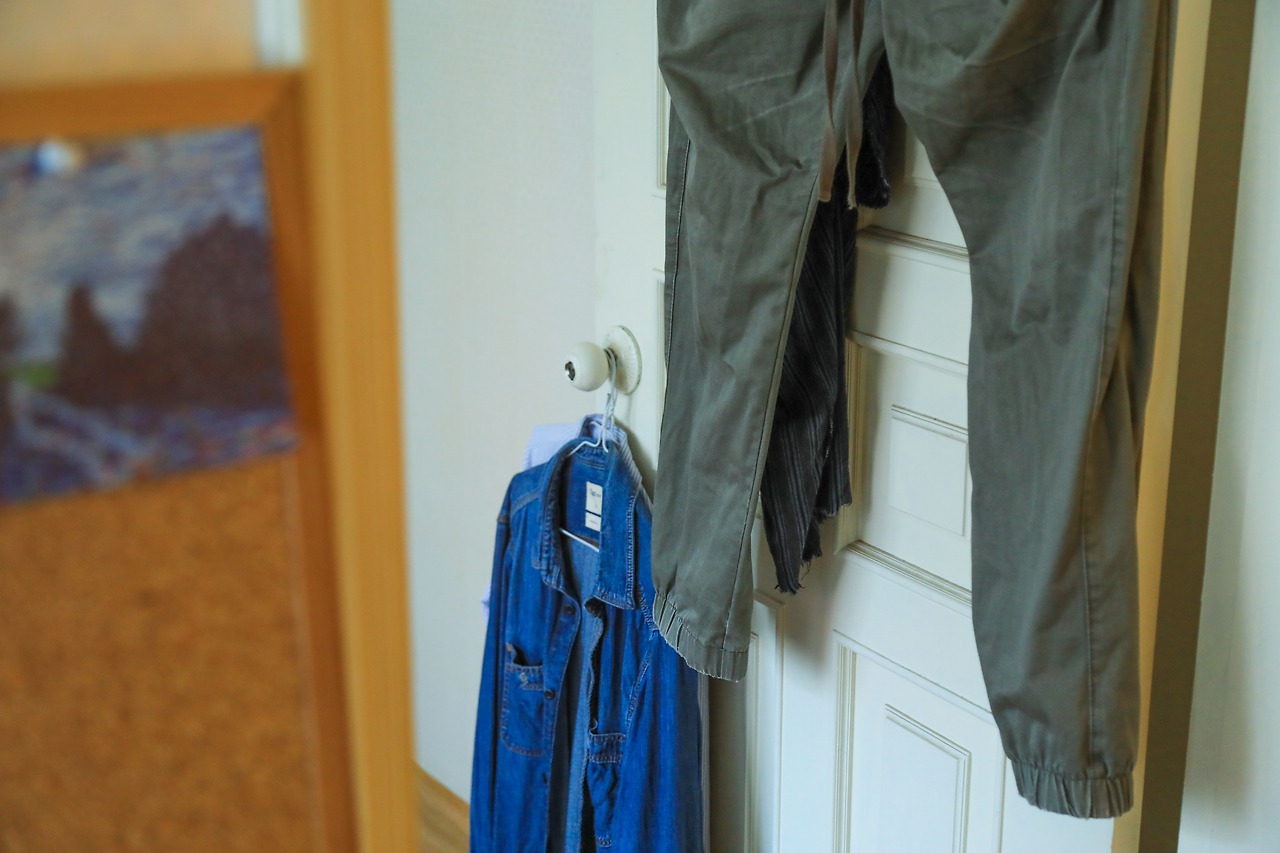 오전에 했던 빨래는 다 말랐어. 마른 바지의 주름을 손으로 쓸어보고 만족해.