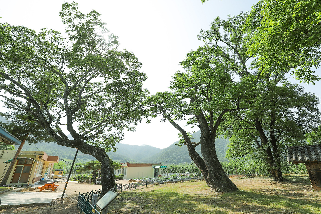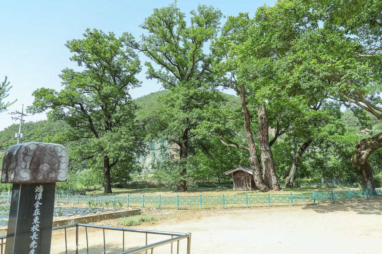 '회화나무·느티나무 및 팽나무 등 10여 그루의 나무와 함께 작은 숲을 이루고 있다.