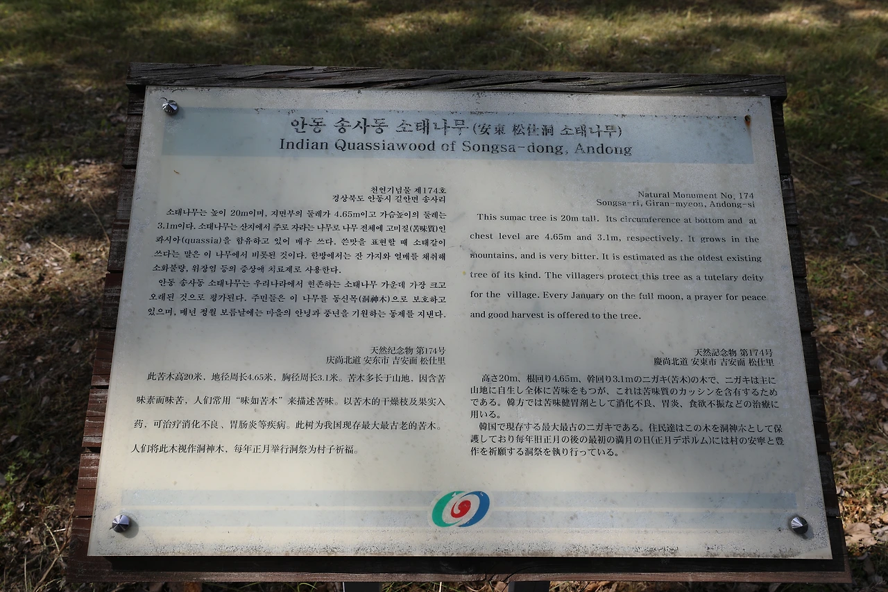 *안동 송사동 소태나무는 천연기념물 174호다.