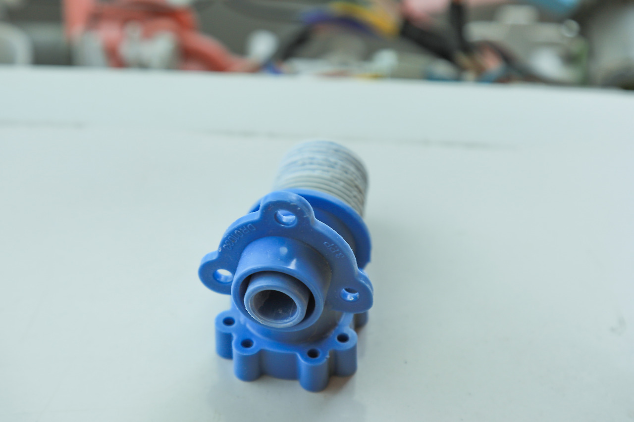 플라스틱 급수밸브는 온수와 냉수 두 개가 있었는데, 냉수 부분은 10년 전쯤 겨울에 물이 든 호스를 연결해 두었다가 얼면서 금이 가서 못 쓰고, 온수 쪽 밸브만 사용해 온 터였다. 혹시 다시 조립하지 못할까 싶어 일단 고장난 지 오래된 냉수 쪽 파란색 플라스틱 밸브를 풀어보기로 했다. 나사가 총 6개였는데 4개가 직선으로 드라이버가 들어갈 수 없는 위치에 있었다. 좌절하고 그냥 A/S를 부를까 하다가, 풀기 쉬운 2개의 나사를 풀어봤다. 그랬더니 선과 연결된 밸브가 통째로 움직여 나머지 나사도 풀 수 있게 됐다. 쉽네. 세탁기에서 분리해 낸 파란색 플라스틱 밸브는 손바닥 1/3 정도의 크기였다. 이것만 구하면 다시 끼워 넣는 건 5분도 안 걸릴 일이었다.