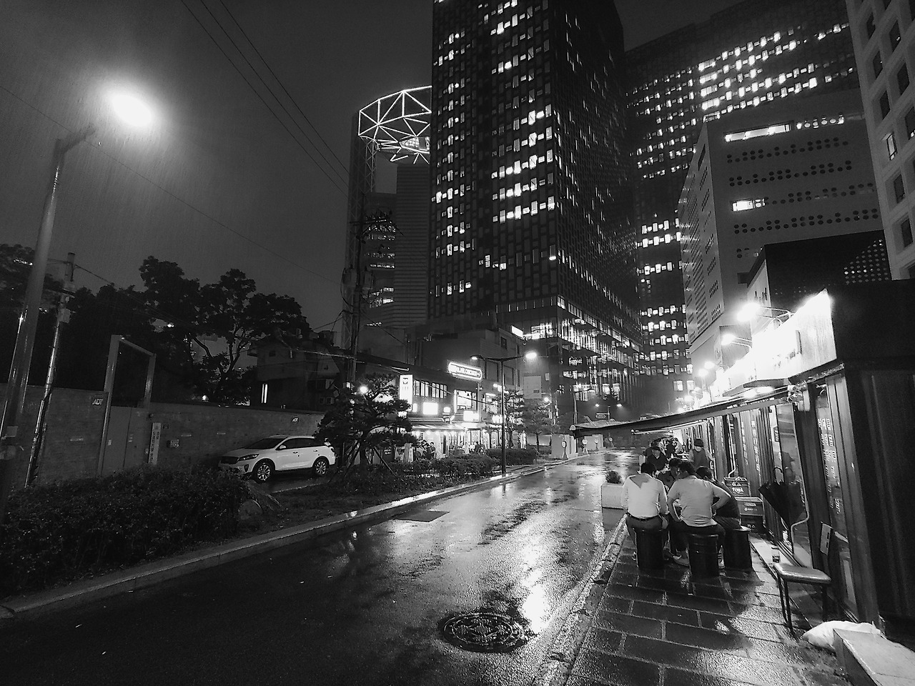 담배를 피우던 남자 셋이 무게감 없이 건들댄다
