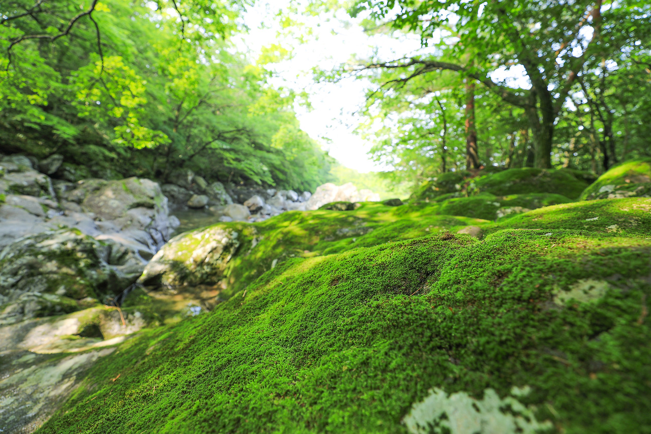 물론 2km가 넘는 하산길에도 사람은 없었고, 조그만 소리에 여전히 놀랐다. 하지만 하늘을 가린 울창함이 없어진 어느 시점부터, 양 옆에 즐비한 고목들이 눈에 들어왔다. 걸음을 늦추다가 멈추고 사진을 찍었다. 여유를 되찾은 채 나무 사이를 걷고 즐겼다. 땀과 습기로 찐득했던 피부도 말랐다.