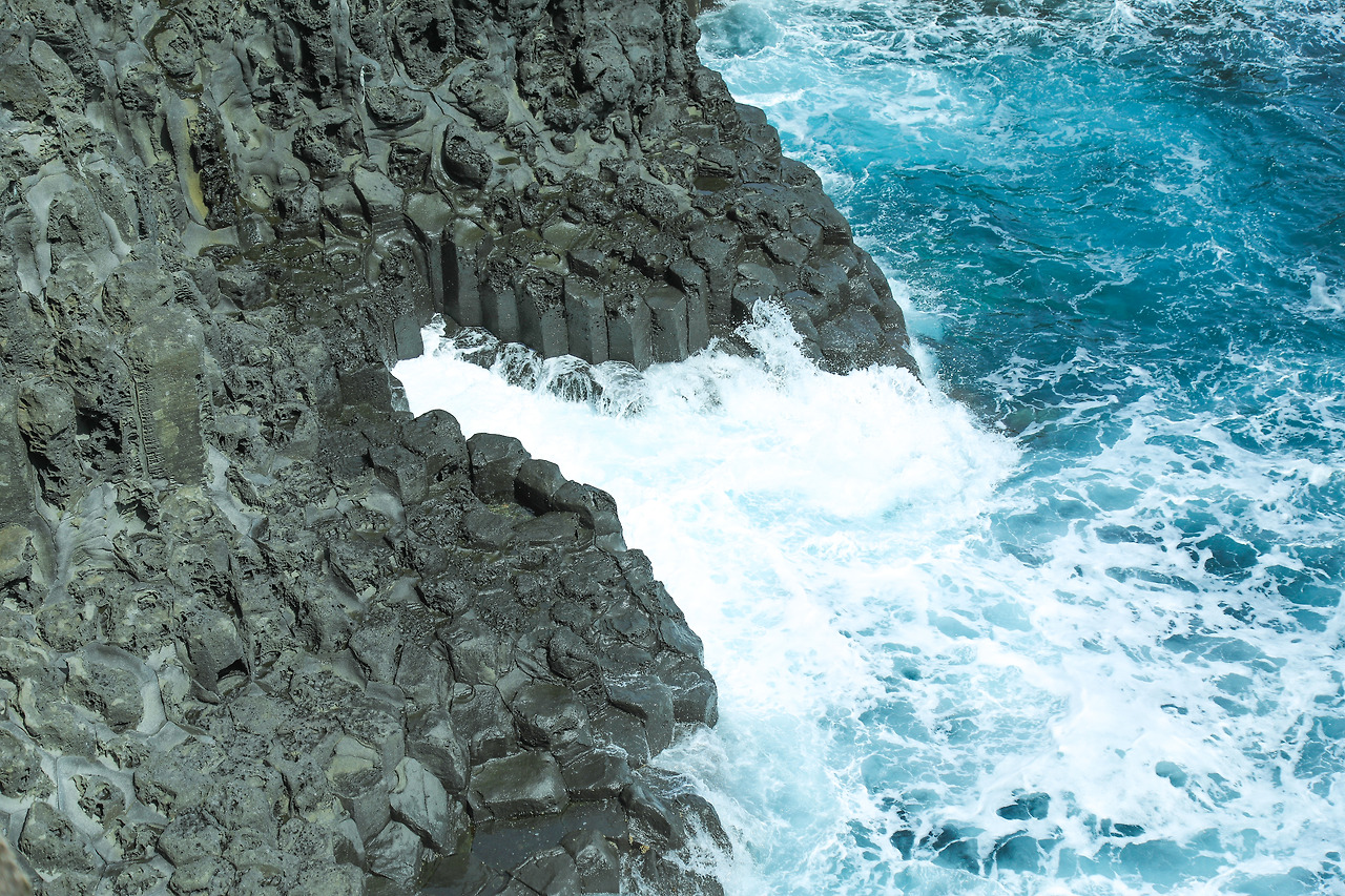관광객들이 쓱 보고 지나가는 주상절리에서는 맘 놓고 시간을 보냈다. 바위에 부딪치는 파도를 보는 게 이리 즐겁다니...