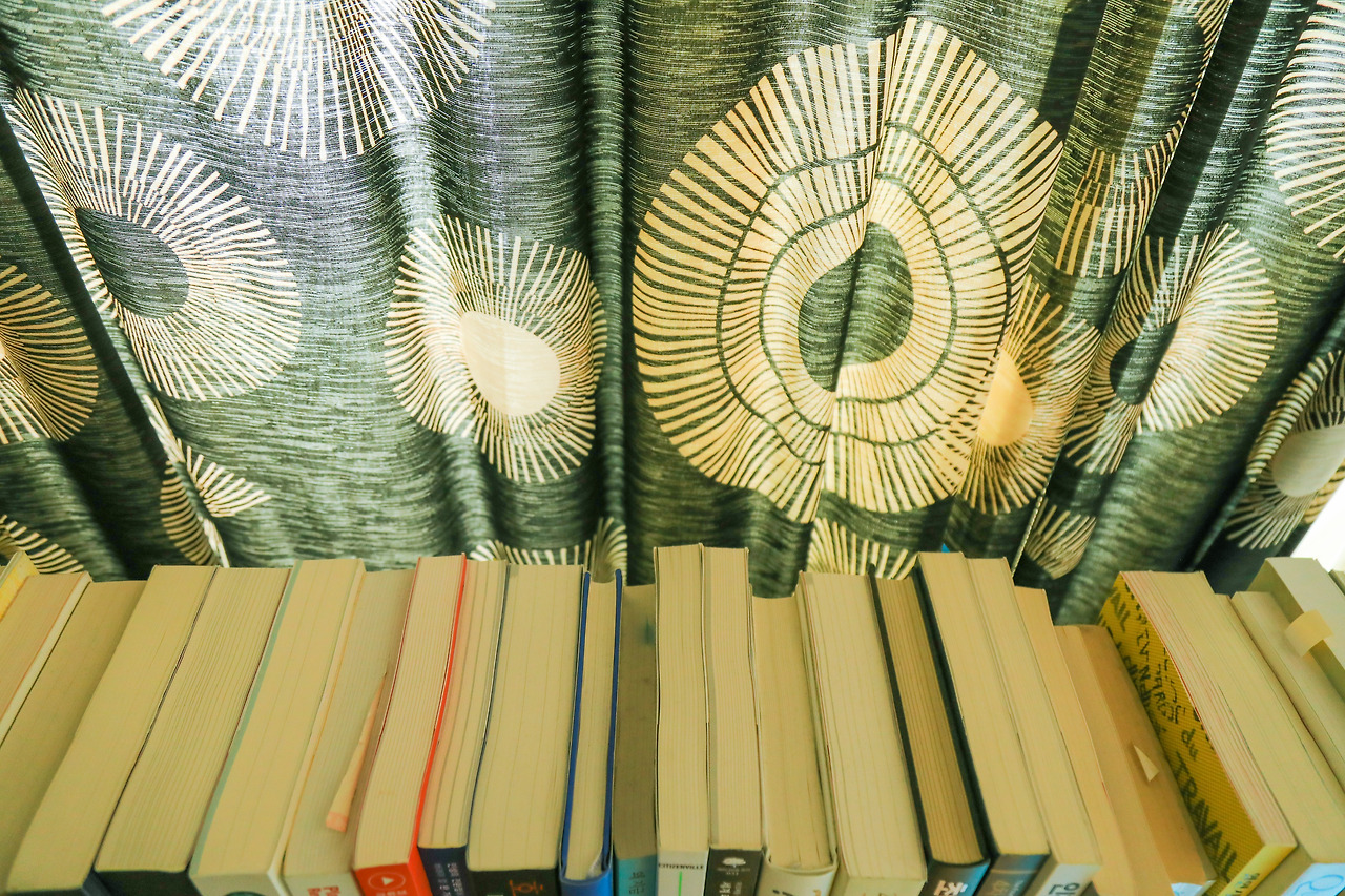 구석 칸의 책들은 먼지를 뒤집어쓰고 있었다.