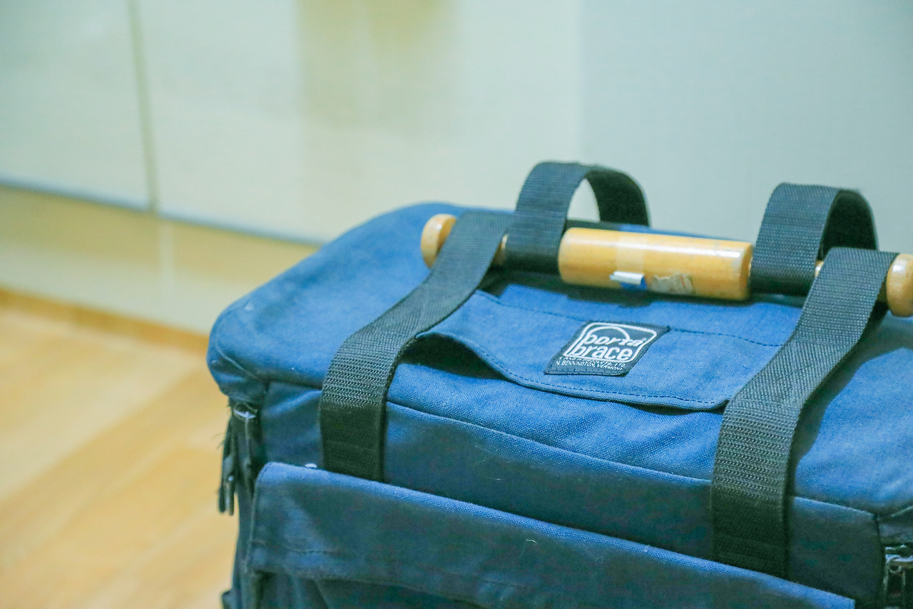큰 방 벽장 구석에서 파란색 가방을 꺼낸다.