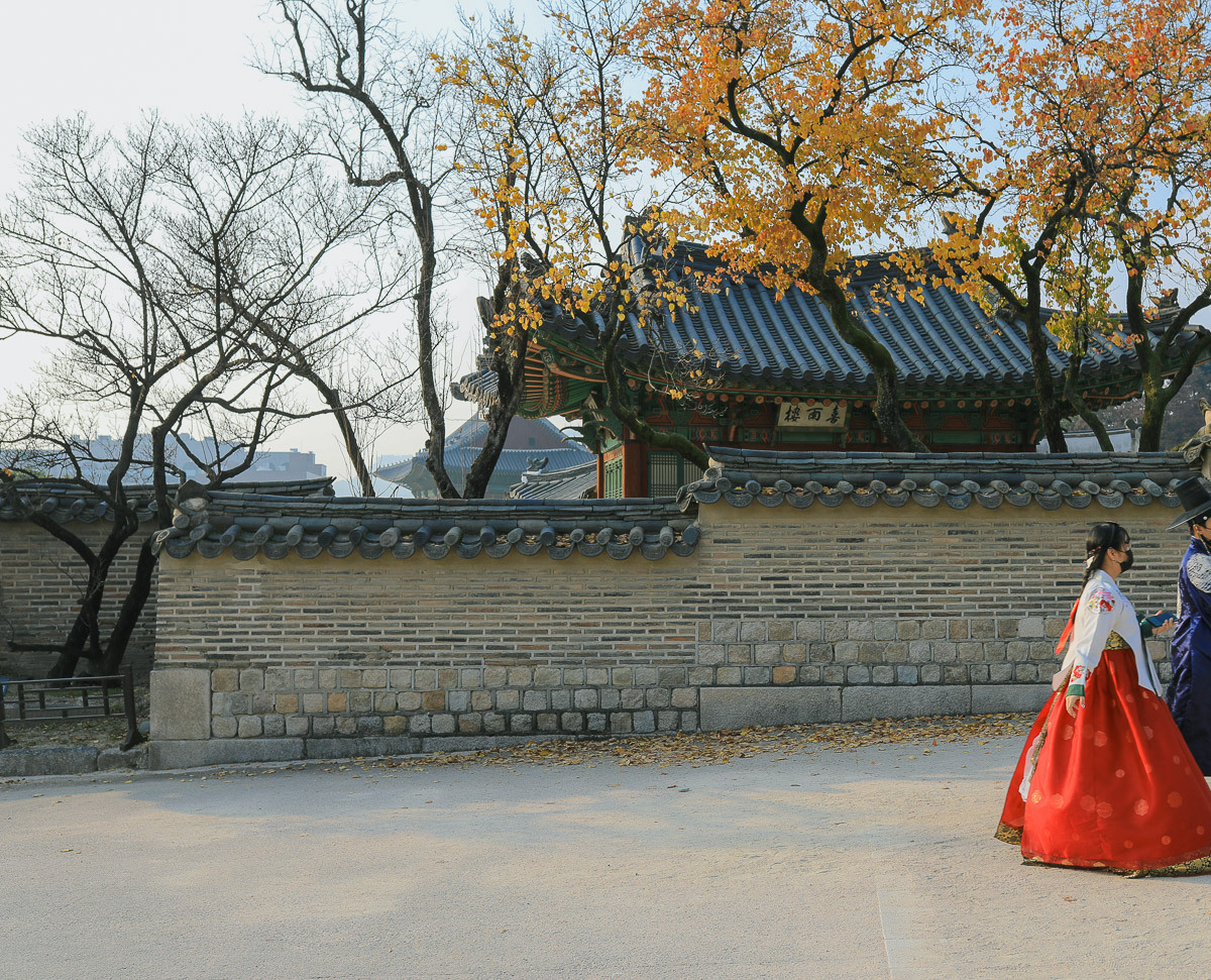 한복을 화려하게 차려입은 두 명의 여성이 나를 앞질러간다.