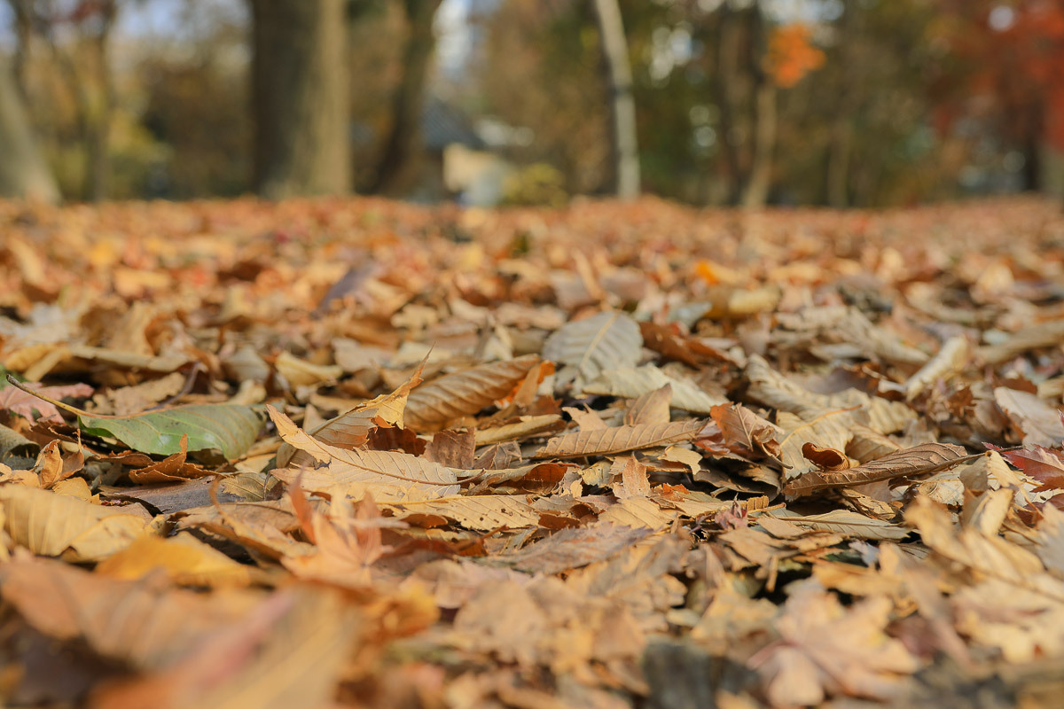 자판기 옆 의자의 주위엔 낙엽이 가득했다.