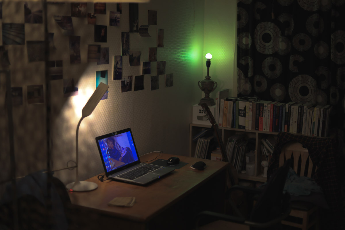 빨강, 초록, 파랑 등의 빛이 차례로 거실을 낮게 밝혔다.