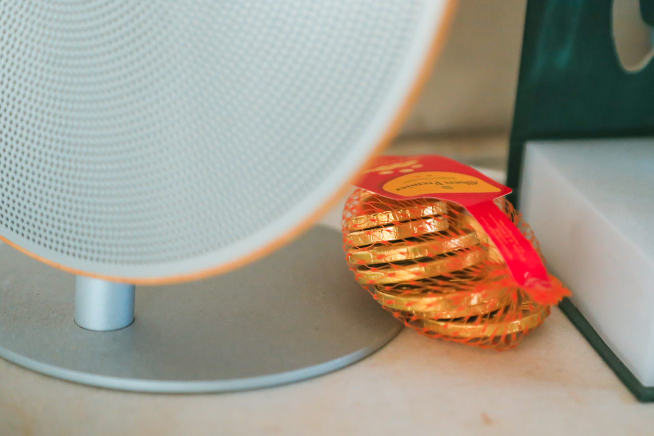 부엌 구석 스피커 옆에 동전 초콜릿을 던지듯이 놔둔다.