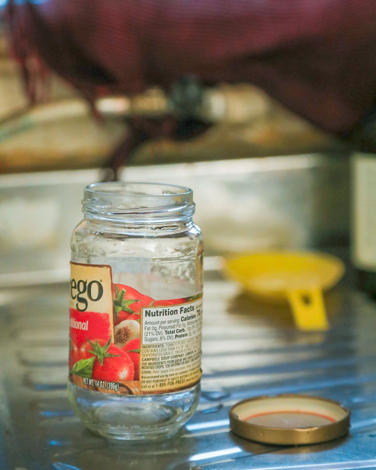 뚜껑을 따고 개수대에 쏟아붓는다.