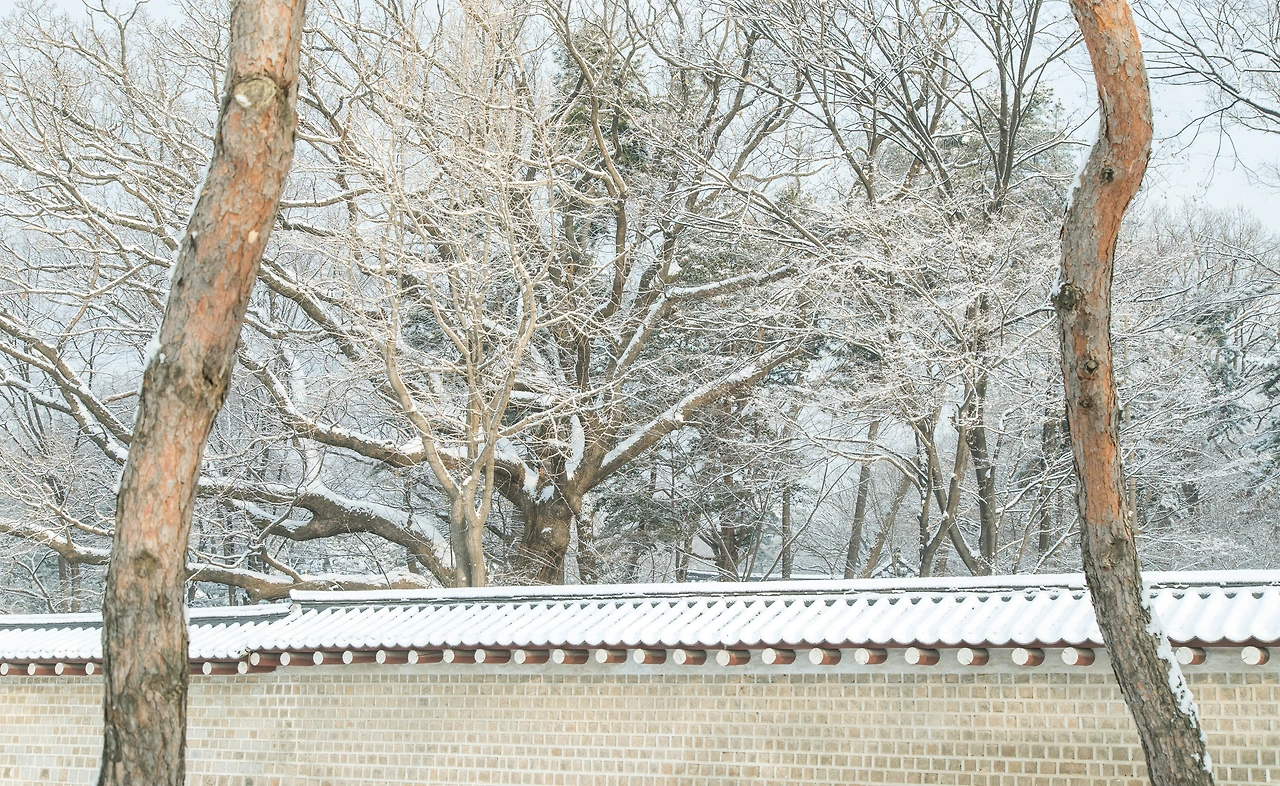 덮인 눈들로 인해, 종묘의 담장과 나무들이 땅에서 30cm쯤 둥실 떠있는 기분이다.