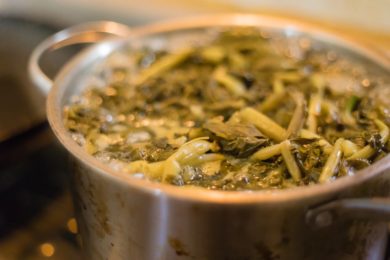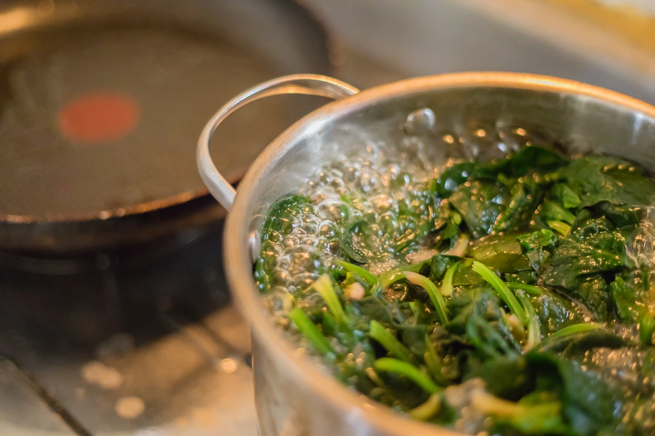 소금을 한 수저 넣고 끓인 물에 시금치를 넣는다.
