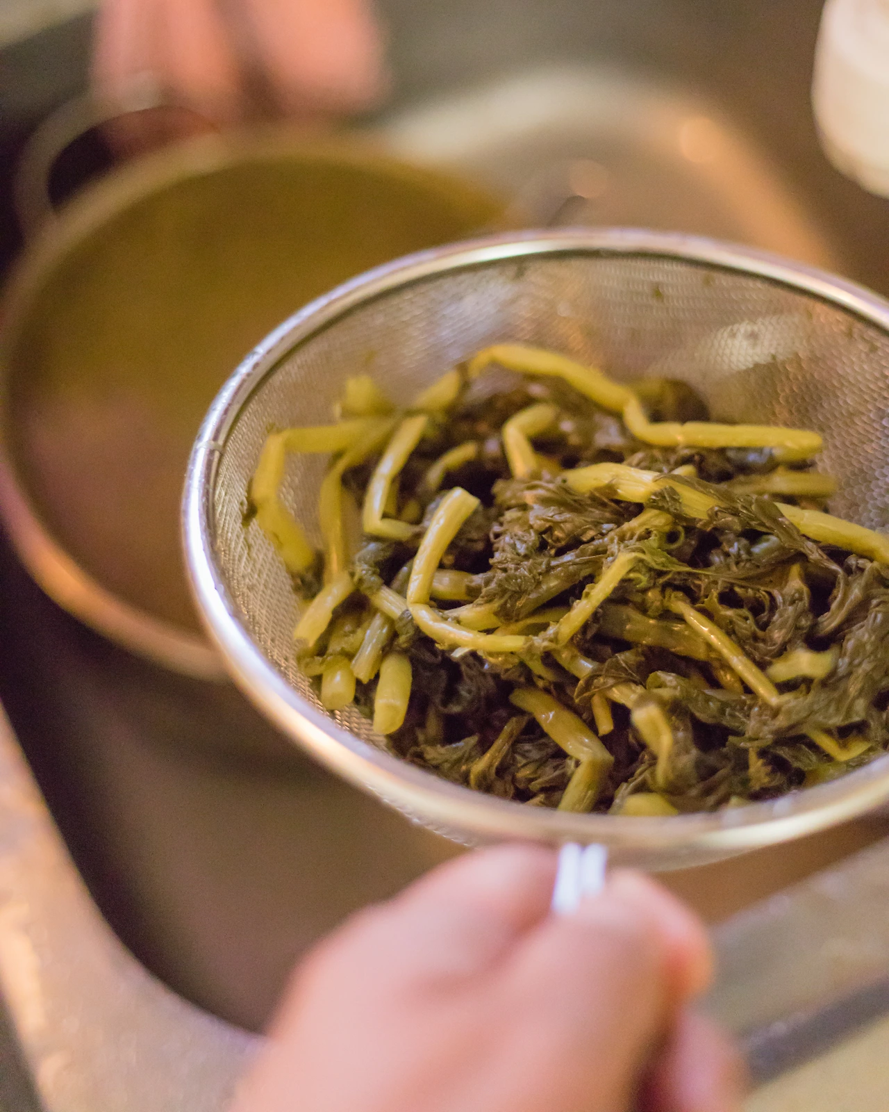 물기를 털어내고 반 주먹씩 손에 쥐고 물기를 짠다.