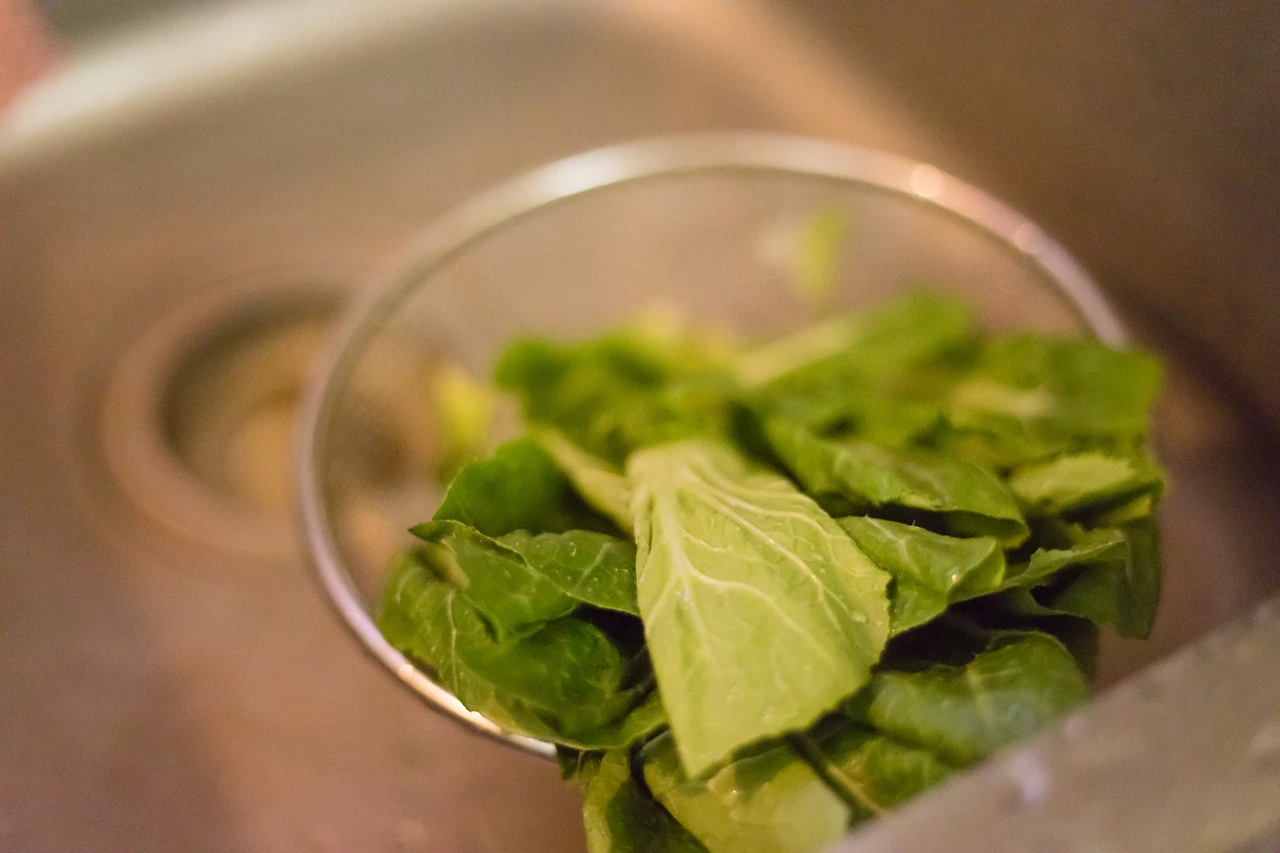 잎을 하나하나 떼면서, 손으로 뽀득하는 느낌이 들 때까지 씻는다.