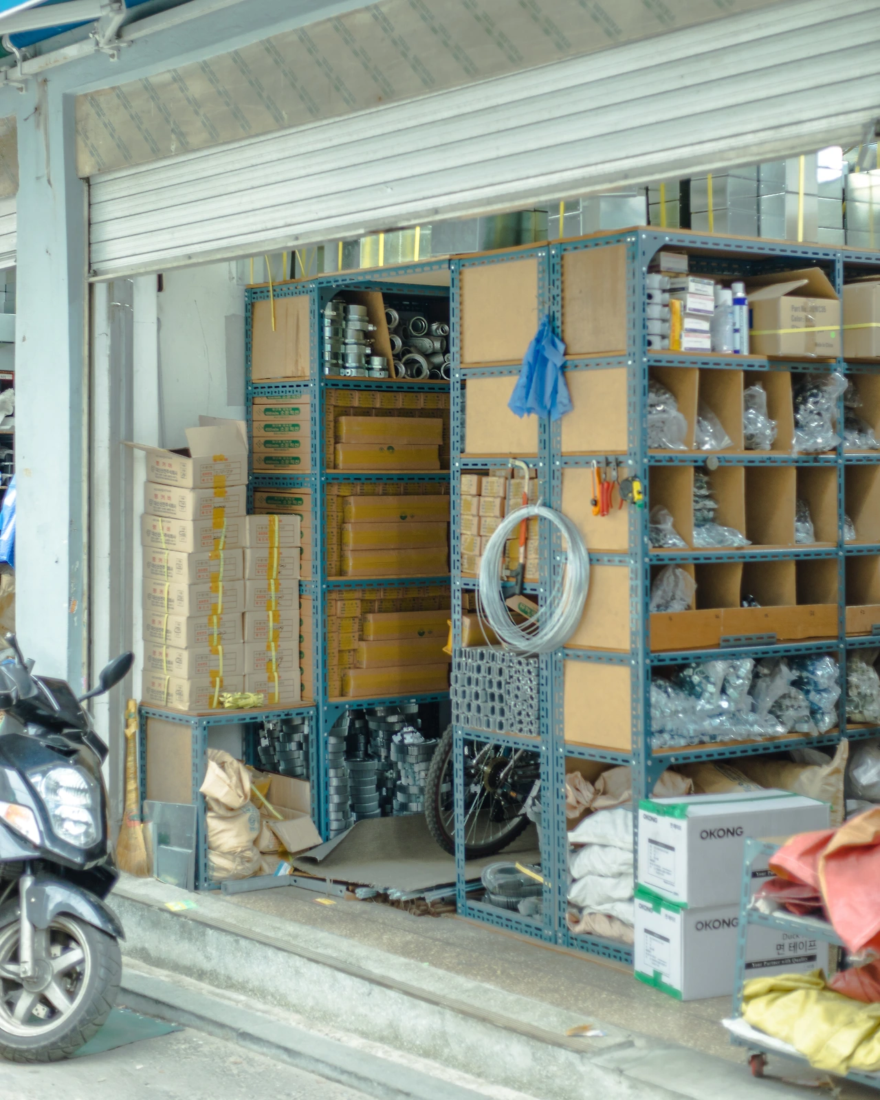 문 열린 점포마다 오토바이 기사들이 물건을 싣고 있다.