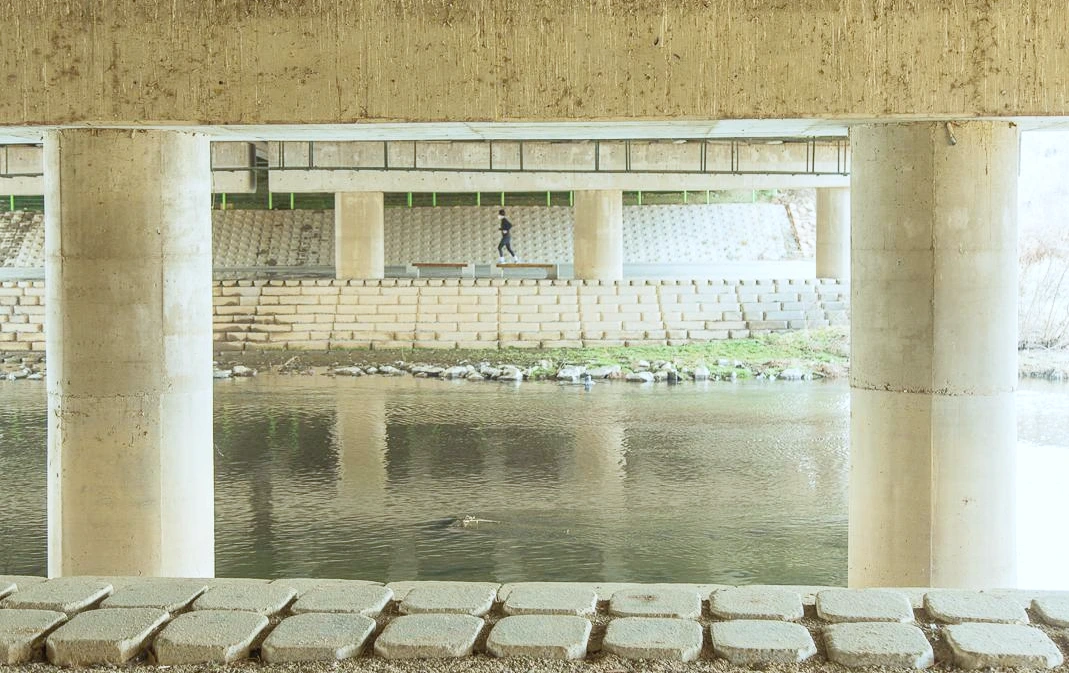 하천의 양변으로 도보 산책로와 자전거도로가 구분되어 닦여 있고,