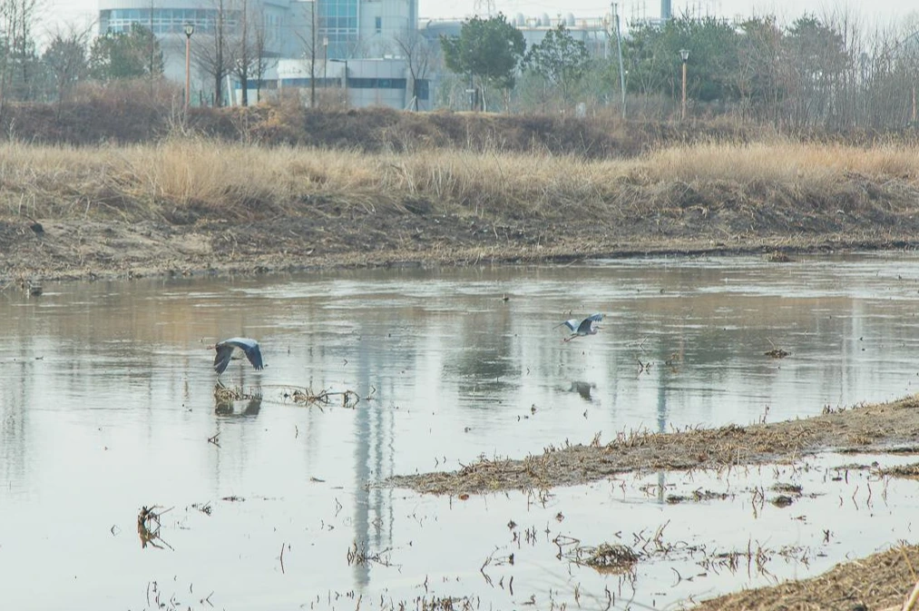 재두루미(맞나..?)가 노니는 천변을 따라 걷는다.