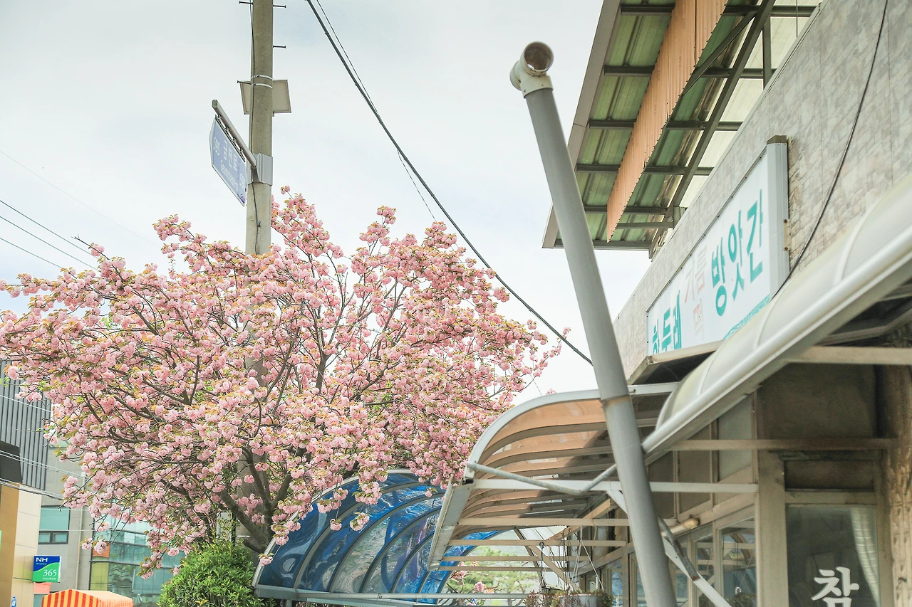그런데 바로 앞에 있는 방앗간의 겹벚꽃나무가 눈에 들어왔다.