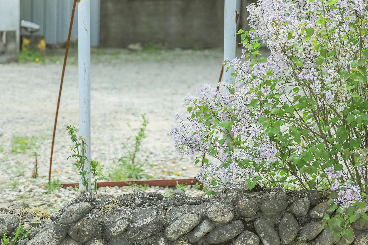 그래서 기둥 옆에 핀 라일락의 향을 맡고 사진 몇 장을 찍고 다시 차에 타려 했다.