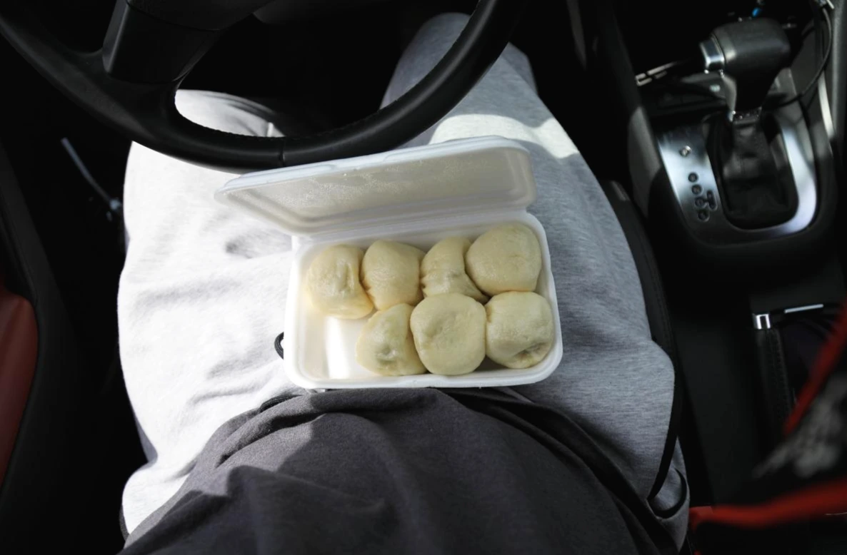 한낮에 달궈진 차 안에서 먹는 뜨거운 만두는 맛있었다.