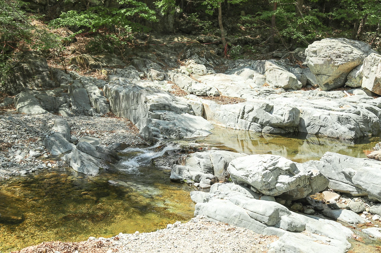 잘 닦인 바위에 반사되는 빛에 눈이 부셨다.