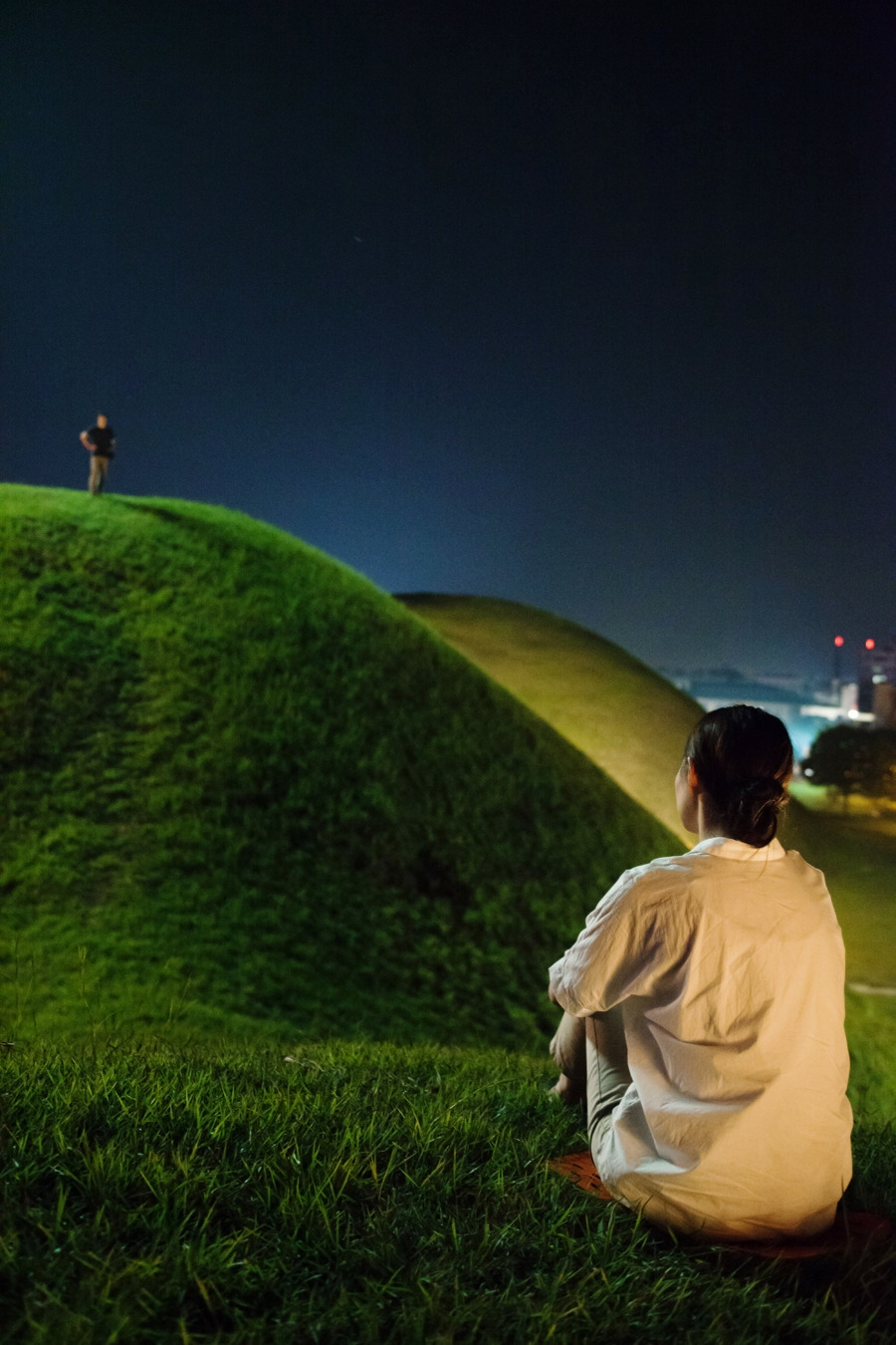 수천 년 전에 죽은 누군가를 안에 품으면서도 지금 살고 있는 누군가의 시선을 매일 받고 있는 능들. 어떻게 보면 그걸 동네 풍경으로 두고 사는 경주는 특별해 보일 수 있다. 하지만 우리 모두 크고 작은 죽음의 경험과 같이 산다는 점에서, 길게는 우리 자신의 필연적인 죽음을 늘 인식한다는 점에서 능의 풍경은 오히려 심상할 수 있다.