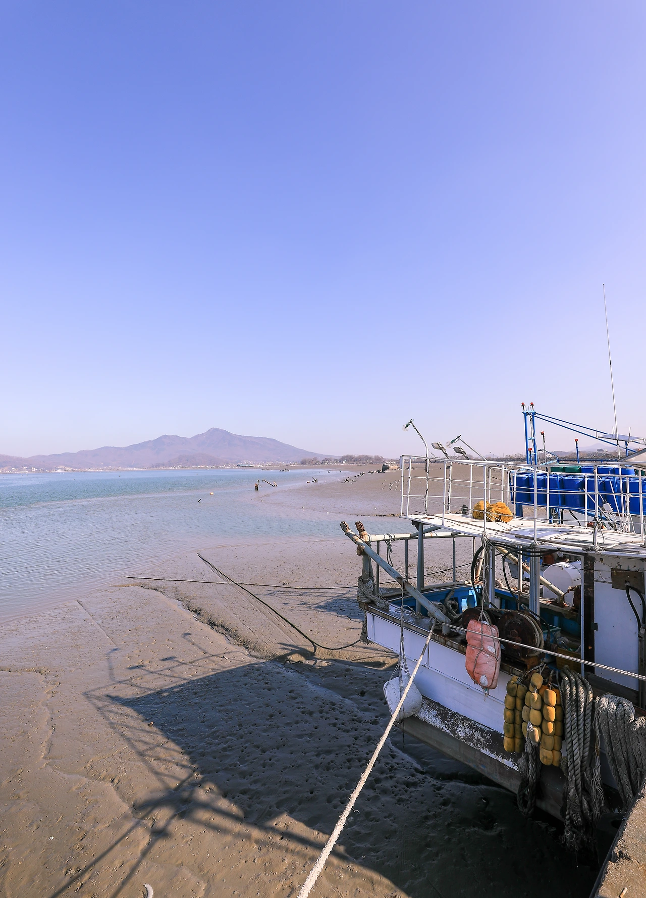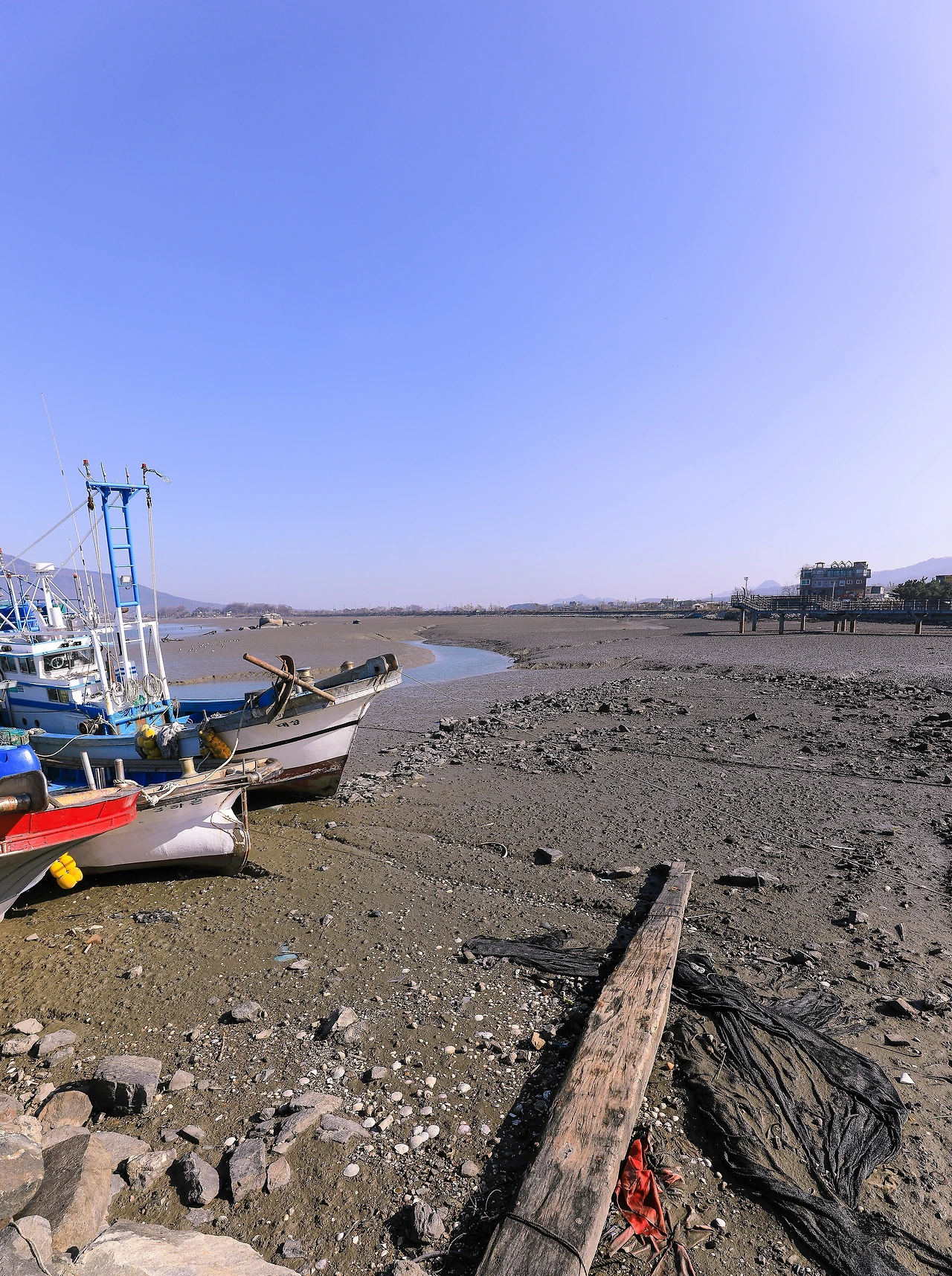 배와 뻘이 섞인 풍경은 녹이 슨 부품처럼 단단하다.