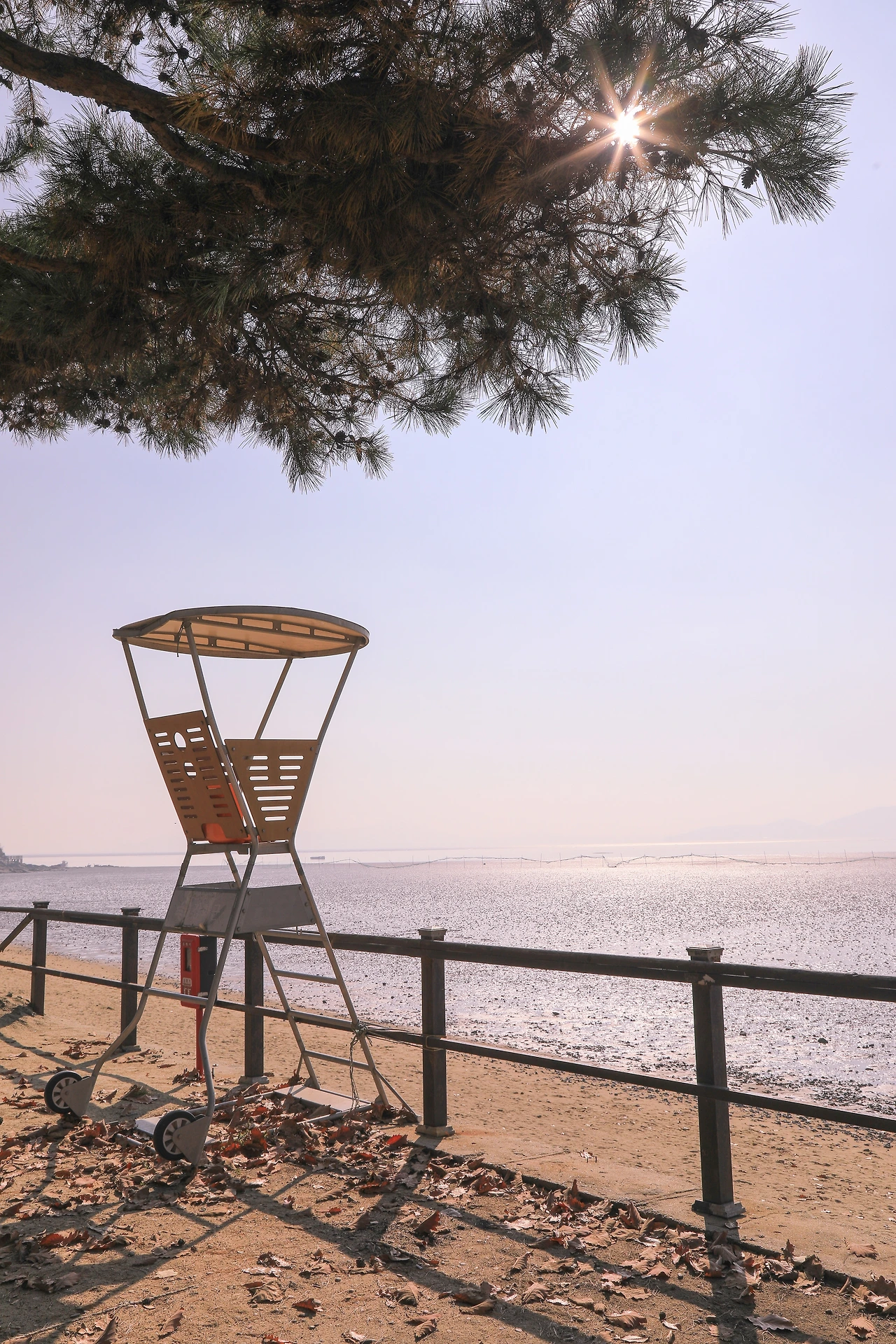 모래사장 쪽으로 내려가지 않고 해변의 끝에서 끝까지 걷는다. 뻘에 햇빛이 반사된다. 멀리서 보는 뻘에는 어떤 움직임도 보이지 않는다. 뻘과 모래사장의 경계는 물이 들고 난 축축한 자국이다.