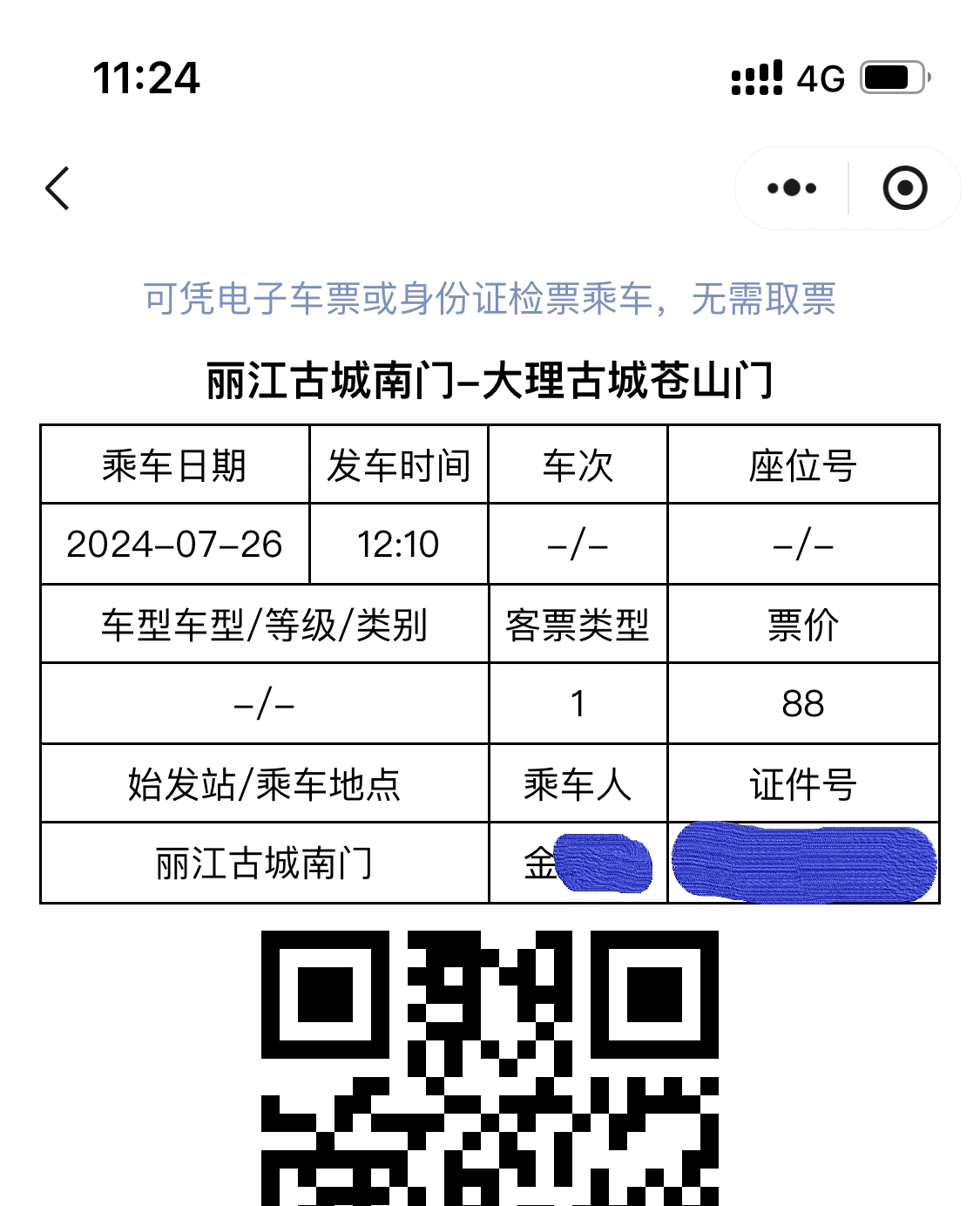 그러면 위챗에 그 터미널 채널에 표가 생성됨(시간, 버스번호, 큐알 등등)