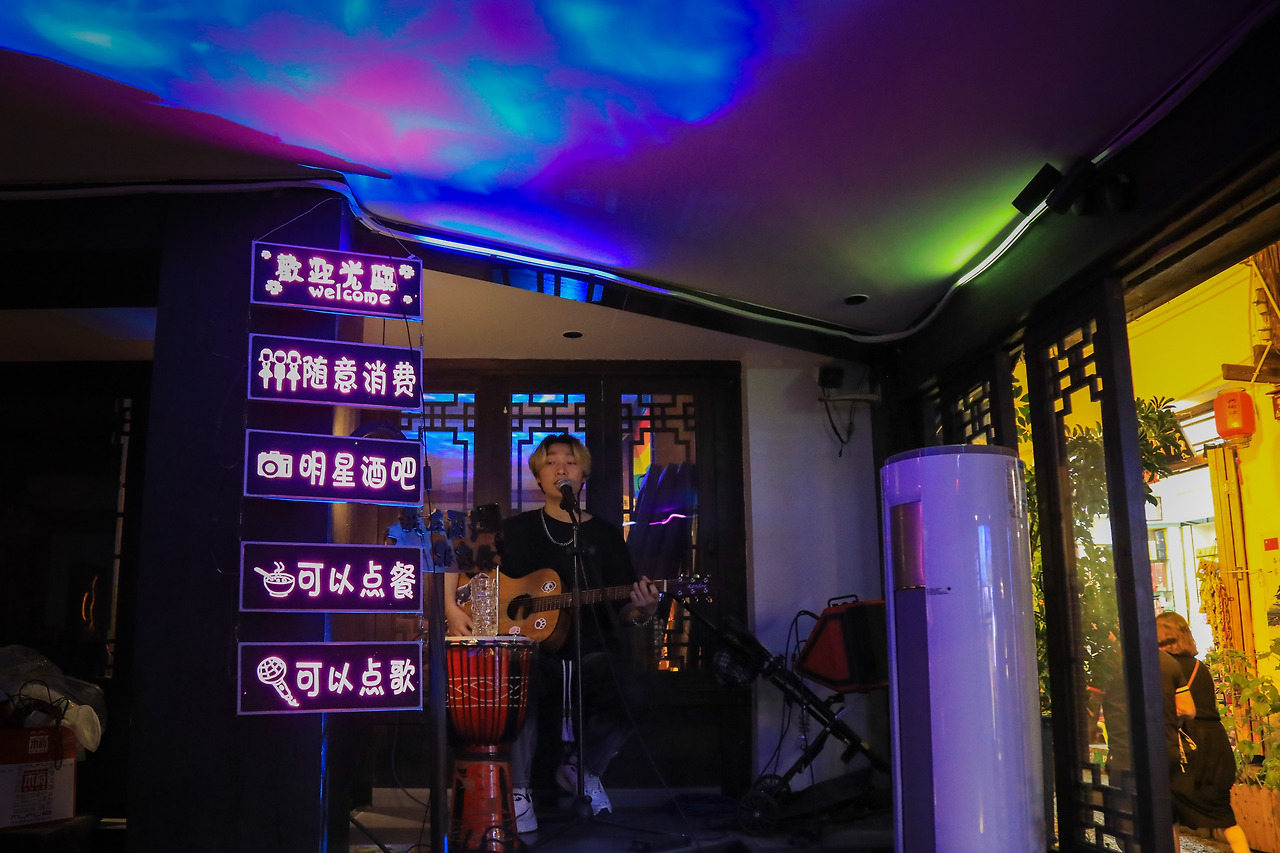 짧은 중국어 실력으로 겨우 알아들은 후렴구로 노래 제목을 찾았다. 윈난이 중국의 남쪽 끝이고, 고성 곳곳에 전통 복장을 입은 여자들이 사진을 찍으며 돌아다니니 매우 적절한 노래 선택이었다. 가수의 앞 테이블에 혼자 앉아 있던 여자가 노래를 경청하던 우리 테이블을 보며 뿌듯한 표정을 짓는다. 아마 저 가수의 친구 혹은 연인이 아니었을까 싶다.