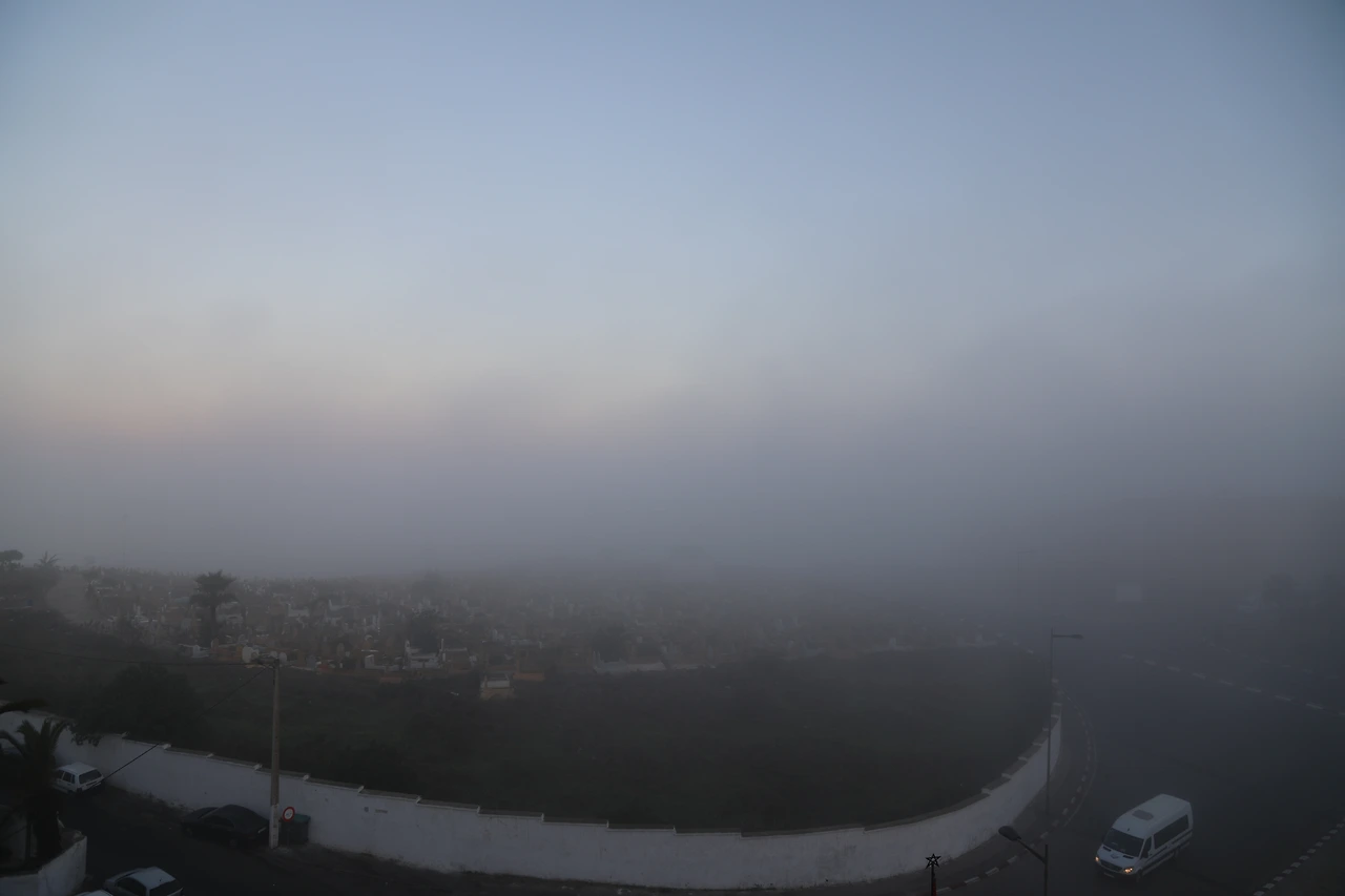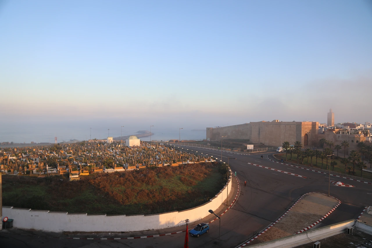 라바트의 숙소인 Hôtel des Oudaias에서 아침에 일어나 짐을 싸다가 커튼을 젖히니 온통 안개다.