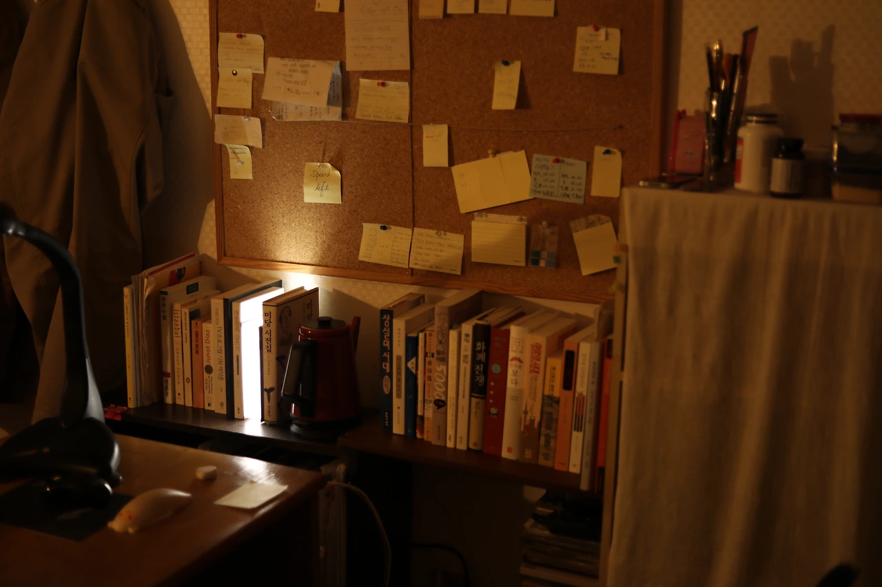 밝기에 한계가 있었기에, 애초에 주방에 있는 다른 조명의 보조 조명 정도로 생각했었다. 그런데 점차 시간이 지날수록 이 조명만 켤 때가 많아졌다. 부엌으로 옮긴 소파에서 책을 읽을 때는 스탠드를 켜지만, 그렇지 않고 누워서 미적댈 때는 이것만 켜게 됐고 결국 원래 있던 조명을 다른 곳으로 치워버렸다. 조금 어둡다고 생각했던 조도에 눈이 적응하는 시간은 그리 길지 않았다. 어쩌면,