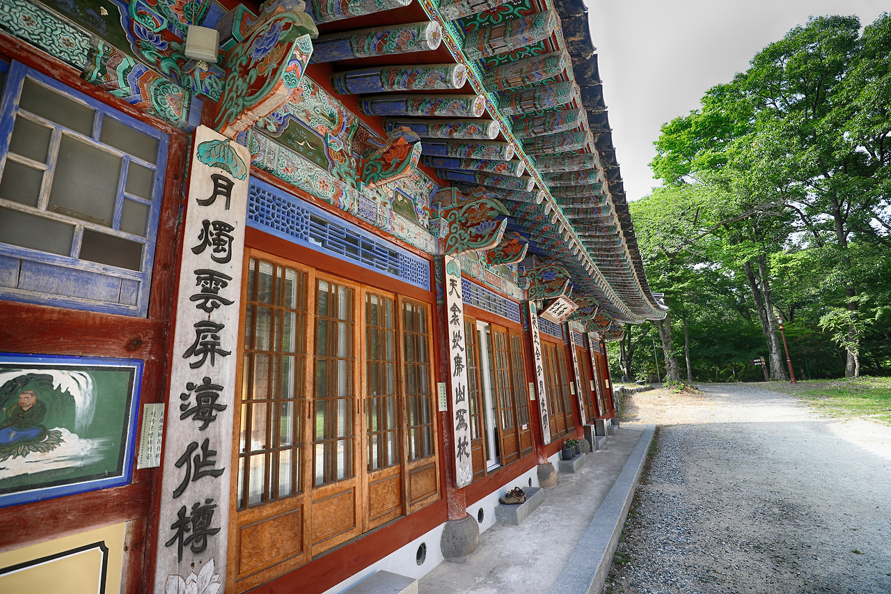 대웅전 옆에는 유리로 문을 짜넣은 건물이 하나 있다.