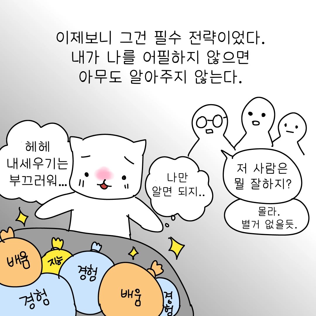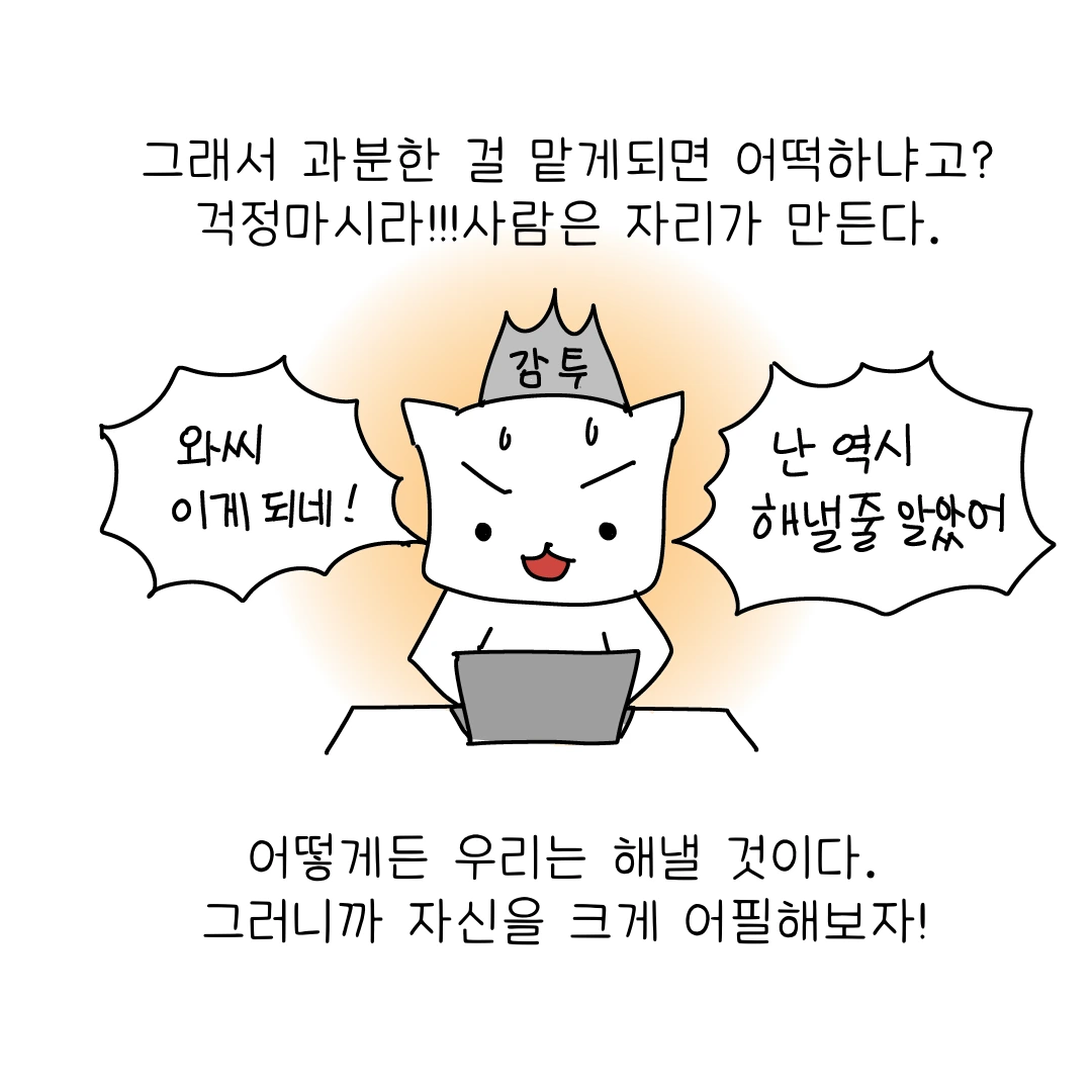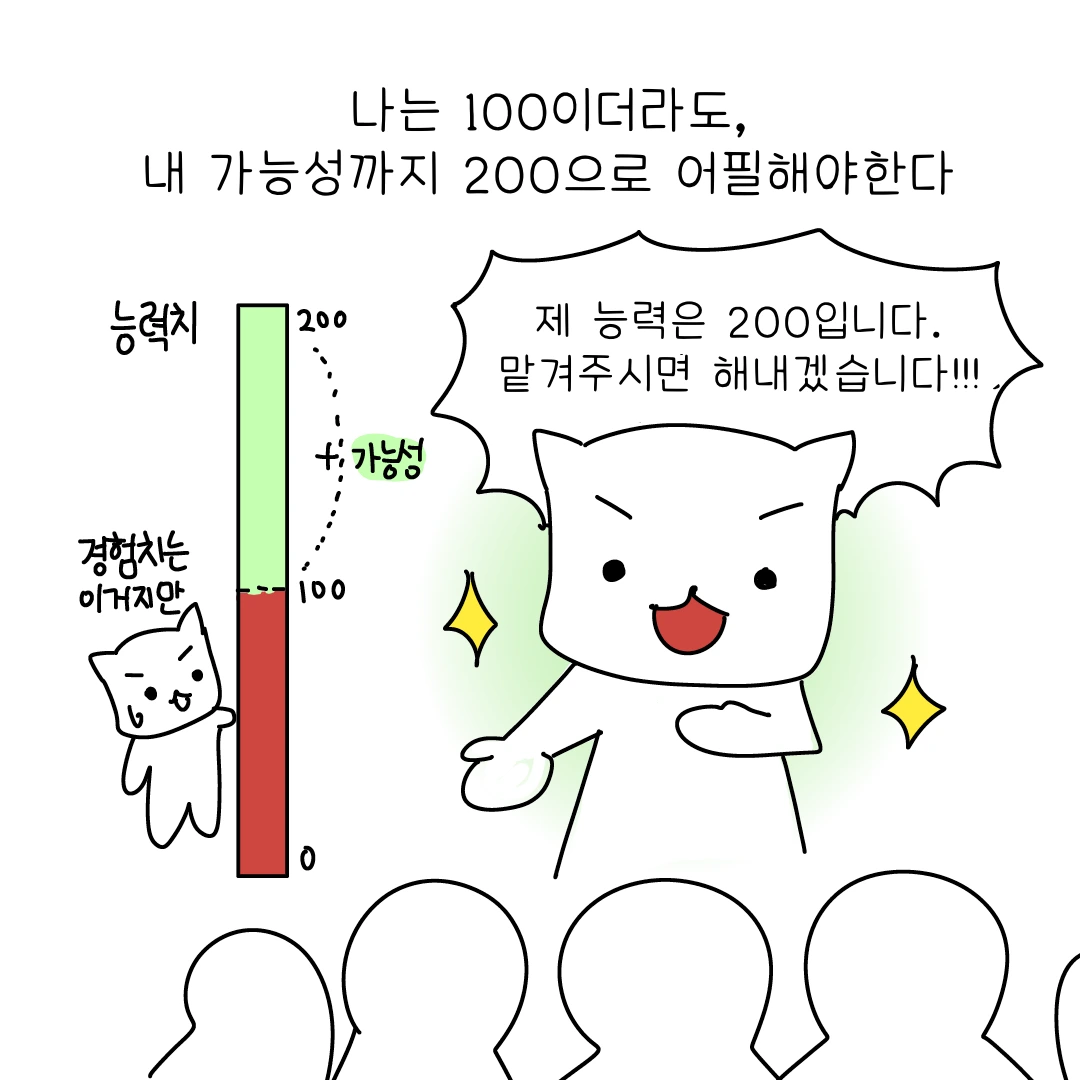 저는 ‘언젠가는 누가 알아주겠지’라는 생각으로 묵묵하게 일하는 스타일이었는데요… 지내다 보니 어느 정도 저를 어필해야 하더라고요. 안 그러면 손해 보는 게 너무 많은 ㅜㅜ…