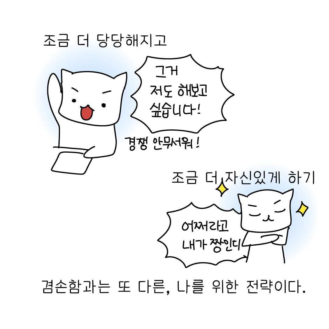 부끄러워하거나 남들 시선을 의식하지 않고 당당하게, 경쟁상황에서 주눅 들지 말고요