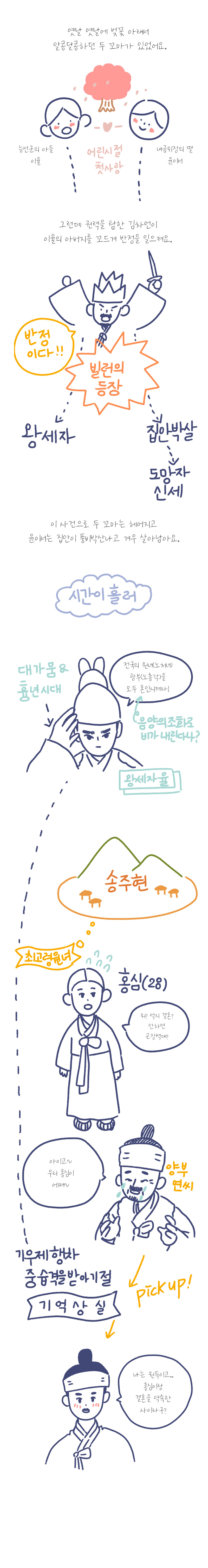 이후 이율은 이 트라우마(마음의 상처) 때문에 삐뚤어져 싸가지 없는 왕세자로 자라난다. 그러다 기우제 행차 중 살수의 습격을 받고, 구사일생으로 살아나지만 기억을 잃고 송주현이라는 한 마을에서 깨어난다. 내가 누구인지도 모르는데, 갑자기 홍심이란 여자애와 결혼을 해야 한다.