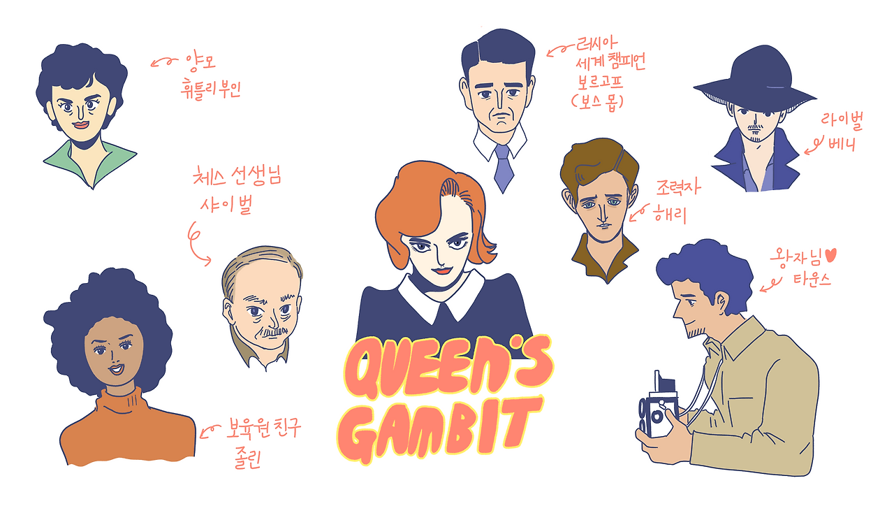 0. 넷플릭스 시리즈 <퀸스 갬빗>은 매혹적이다. 겉으로는 체스에 대한 드라마다. 고아가 된 여자 아이가 체스 챔피언으로 성장하는 이야기이고, 남성들의 전유물로 여겨지던 체스 왕국을 차례대로 무너트리며 전복적인 쾌감을 준다. 볼거리도 많다. 주인공을 따라 1950~60년대 미국, 프랑스, 멕시코, 러시아의 체스 대회를 돌며 복고풍의 의복과 호텔, 풍경을 구경하는 재미를 선사한다. 그러나 속으로는?
