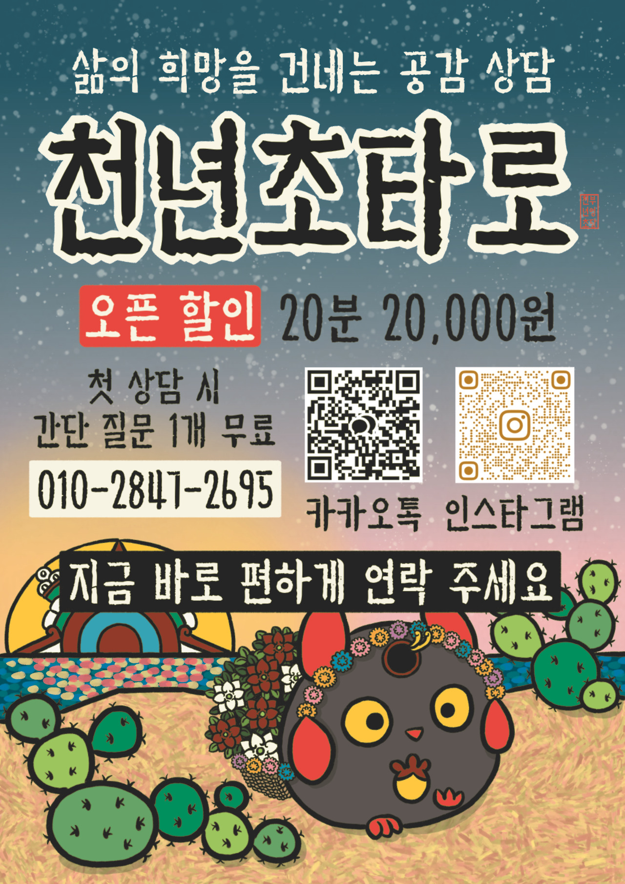 부디 이 글을 읽는 모든 분들이 험난한 상황에서도 희망을 갖길, 그리고 천년초와의 상담으로도 그 희망을 찾을 수 있길 진심을 다해 바랍니다.