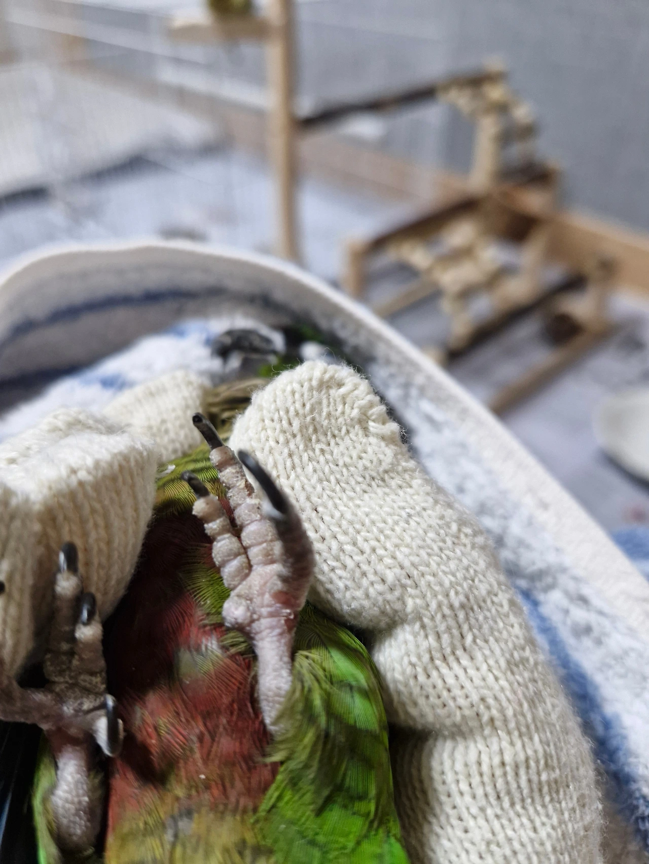 그러나 허세황제와 건강하게 오래 사는 것이 내 인생의 목적인 만큼 약 발라주기를 포함한 매일의 돌봄 루틴을 게을리하기는 어렵다. 그게 방울이 입장에서는 엄마가 악마가 되는 일이라도 말이다. 특히 앵무새는 아픈 곳이 있어도 정말 죽기 직전까지 숨기는 것으로 악명높은 동물이며, 무엇보다 아파도 사람 말로 표현할 수 없는 가엾은 존재이기 때문에 방울이가 아무리 싫어해도 내가 돌봐주는 수밖에 다른 도리가 없기도 하다.