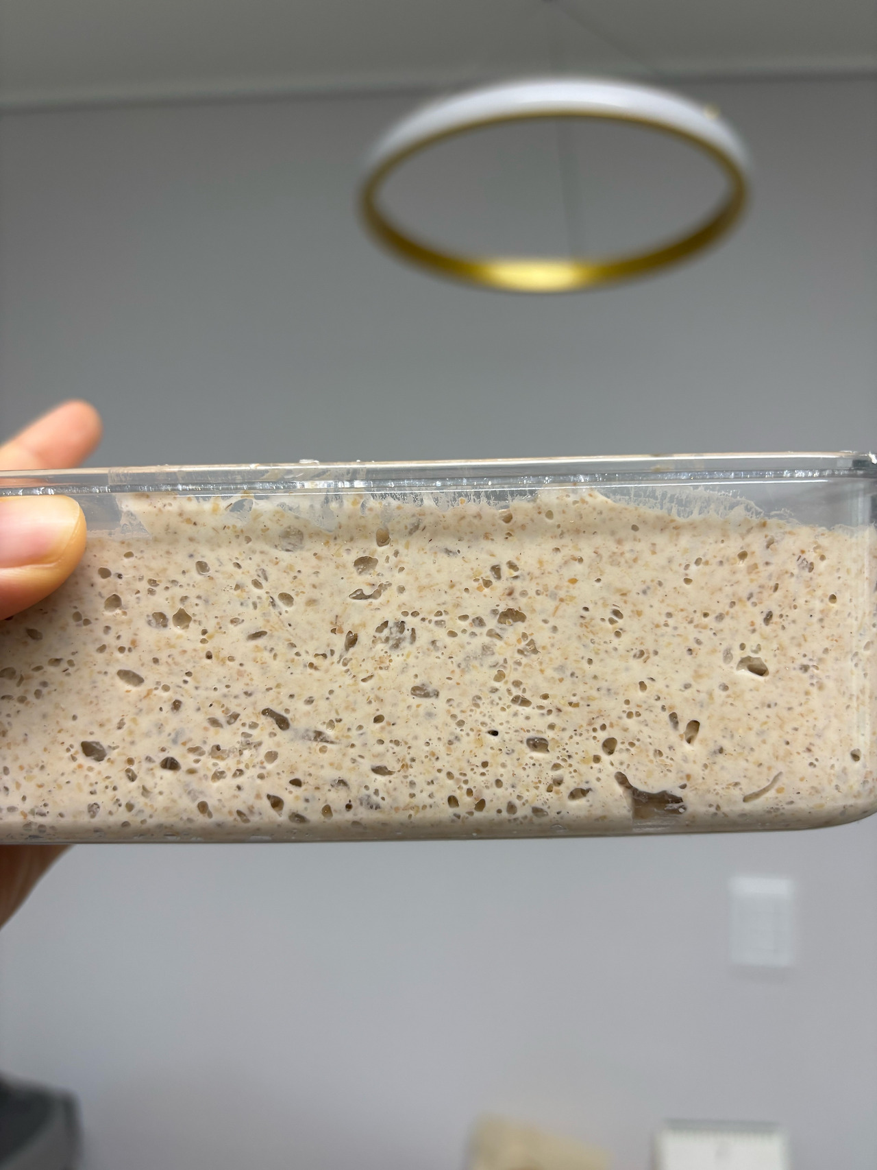 처음에 밀가루에 물을 섞기 시작할 때는 이게 과연 정말로 빵이 될 것인지 머릿속에 물음표가 가득한데, 이스트를 넣고 나면 한 시간, 두 시간이 지날수록 빵이 부풀며 기포가 많이 생긴다. 그렇게 하룻밤이 지나 다음날 아침에 반죽을 확인하면 반죽이 두세 배 정도 부풀어 몇 초에 한 번씩 기포가 터지는 모습을 볼 수 있다. 반죽 안의 미생물들에게 충분한 시간을 주고 기다리니 빵이 될 준비가 된 거였다. 나는 성격이 급해서 처음에는 빵 한 덩이를 만들어 먹기 위해서 최소 15시간이 필요하다는 것이 당황스러웠다. 차근차근 레시피의 단계를 따라 하면서 ‘이스트에게 일하는 시간을 주고 기다리자,’ 고 마음을 먹으니 이스트는 나에게 향긋한 빵을 만들어주었다. 요즘에는 발효기계가 있어서 좀 더 빠르게 발효시키는 방법도 있지만, 직접 만들어보니 ‘시간’을 통해서 만들어지는 빵에 점점 더 매료되고 있다.