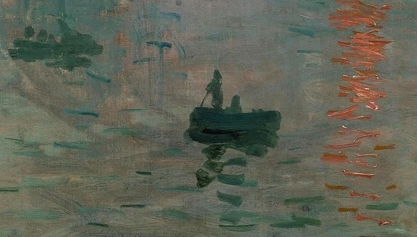 클로드 모네, 인상 : 해돋이(확대본)기성 화단의 눈으로 볼 때 '인상, 해돋이'는 무엇 하나 제대로 묘사된 게 없는 그림이었습니다. 해는 붓으로 푹 찍어 그린 듯했습니다. 항구에 뜬 배는 푸른 선으로 찍찍 그어 표현한 듯했고, 나룻배를 탄 사람들은 검푸른 선으로 거칠게 구현한 듯싶었습니다. 투박한 붓질도 그대로 보이고요. 아직 해가 덜 뜬 새벽, 그러니까 여전히 어두울 시간인데 검은색이 없다는 점 또한 의아했습니다.