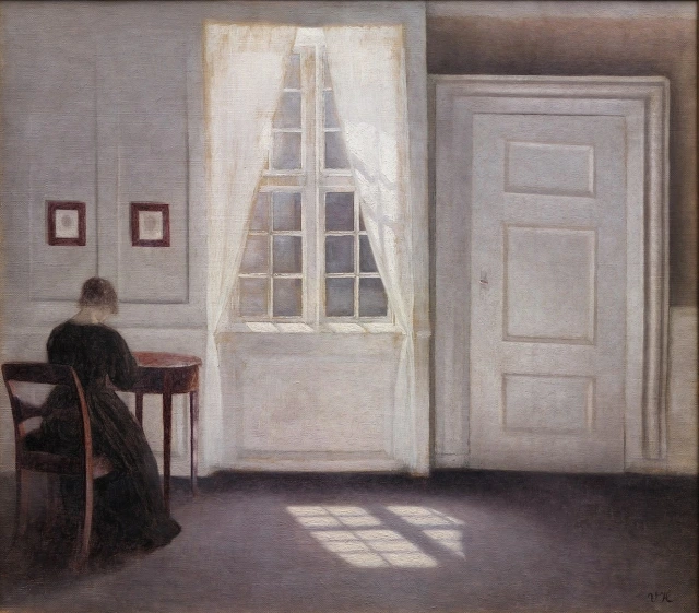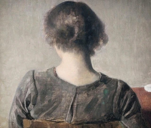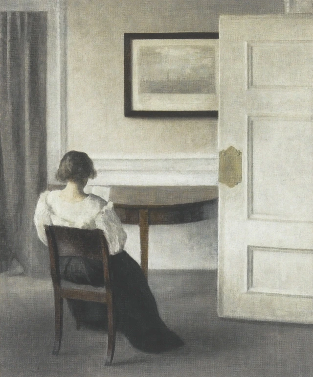 빌헬름 하메르스회, '책상 앞에 앉아 있는 여인(이다)'가령 하메르스회가 그린 〈책상 앞에 있는 여인(이다)〉도 그런 식이다.