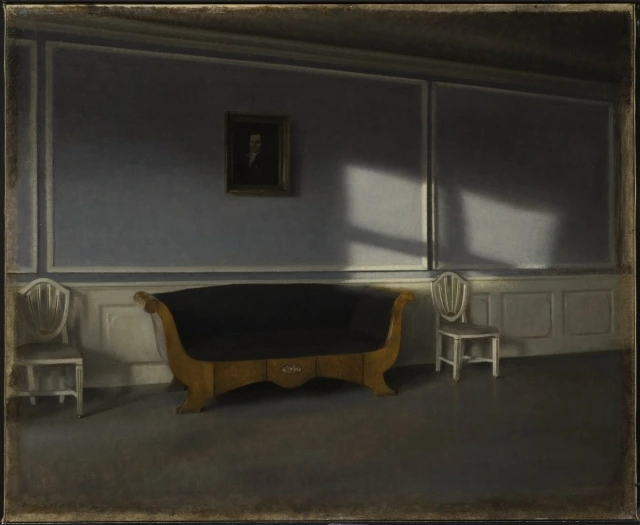 빌헬름 하메르스회, 'Interior with the artist's wife Ida in their home at Strandgade 30'하메르스회는 "싱거운 일상을 그린다"는 평이 지겹도록 따라왔다. 그는 이 족쇄 탓에 제대로 붓을 쥐고도 오랜 세월 무명 생활을 이어가야 했다.