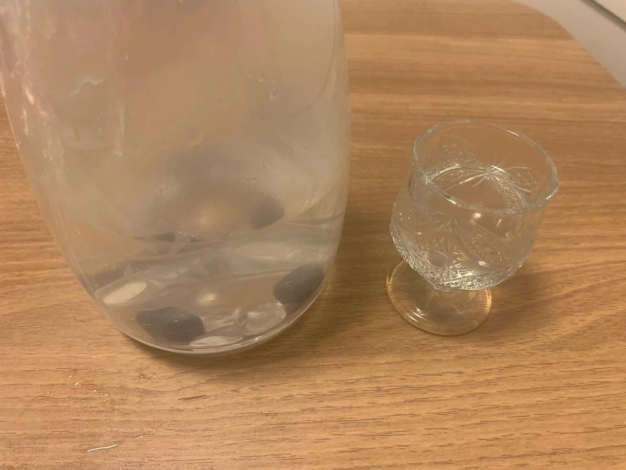 받쳐놓은 유리병에서 술 냄새가 확 났다.