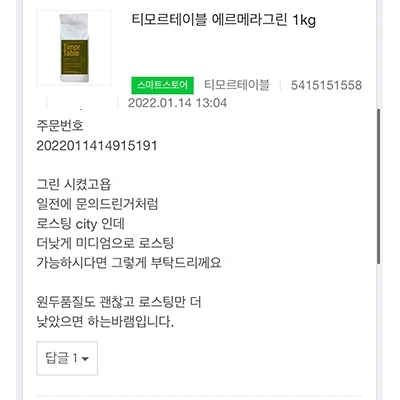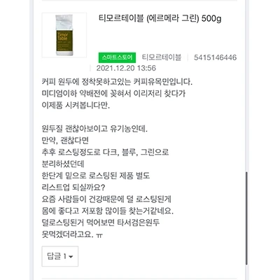 약배전 커피 제공해드릴 수 있도록 노력하겠습니다.