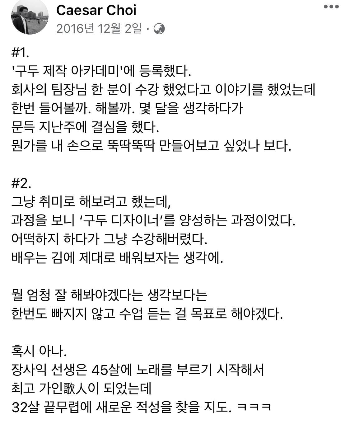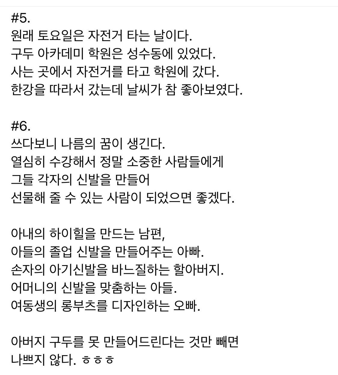 6년 전에는 구두 만들기를 배우고 있었구나